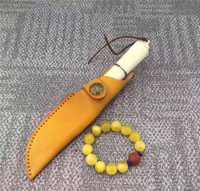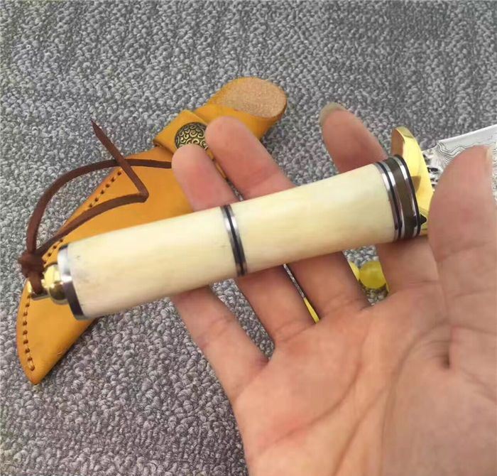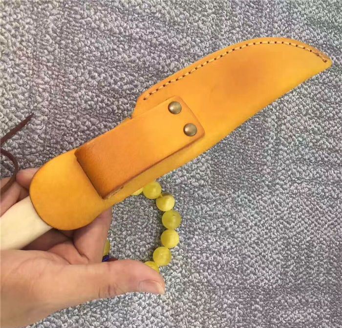 手柄材质:纯黄铜护手+天然羊骨+G10片+纯黄铜尾部