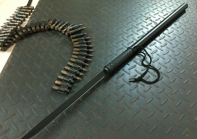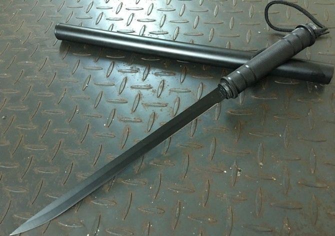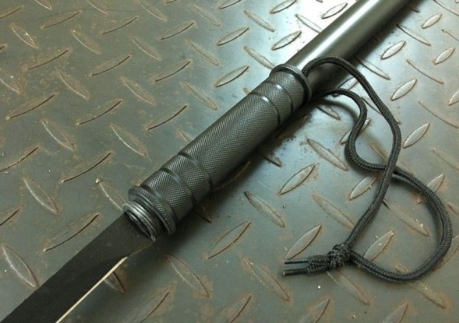 小号组合警棍博击水管刀 接驳后最大长度:87cm 全 长:46cm 刃 长:31cm 刃 宽:1.8cm 刃 厚:0.28mm 柄 长:15cm