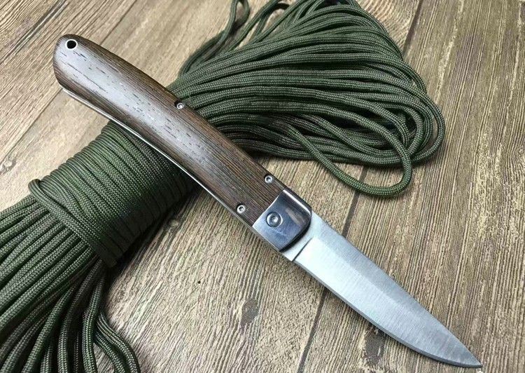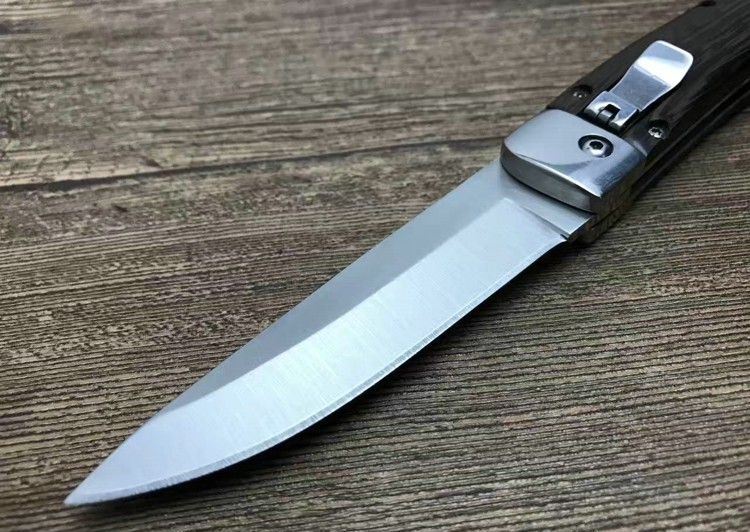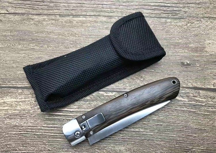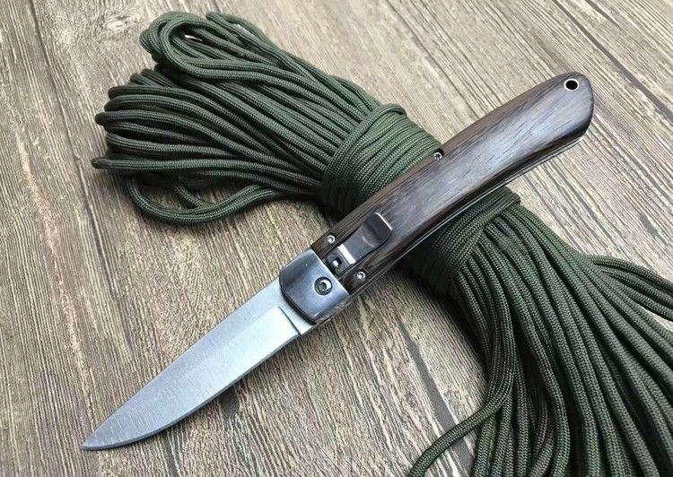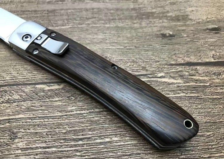 弹弹鱼1310砂光侧跳刀 全 长:212mm 刃 长:85mm 柄 长:120mm 刃 宽:20mm 刃 厚:2.8mm 刃 材:440C 刀 重; 140g 重 量:150g(含包装) 硬 度:57HRC 表 面:沙光 柄 材:天然鸡翅木 锁 型:横出开关 其 他:配尼龙套