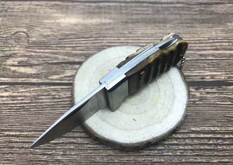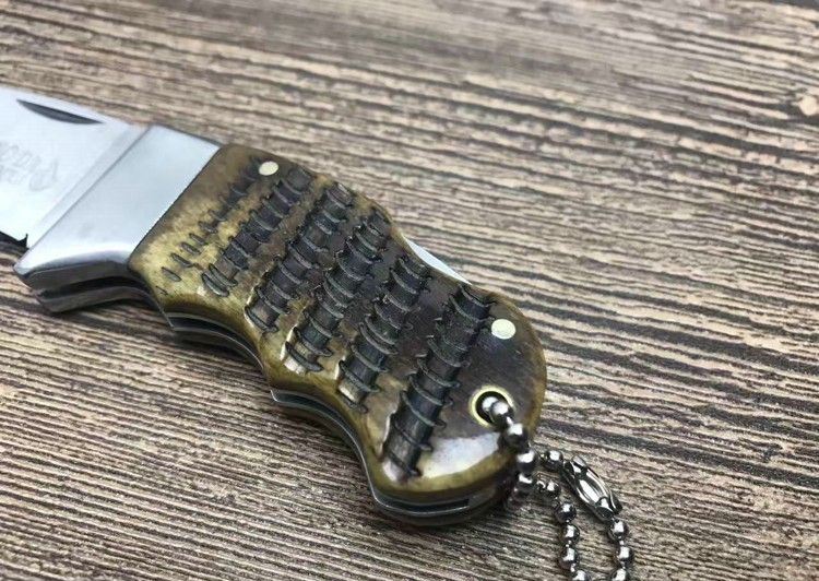 迷你小Q刀牛角版 全 长:11.0cm 刃 长:4.0cm 柄 长:6.5cm 刃 厚:2.7mm 刃 材:3Cr13 硬 度:57HRC 刀 柄:铜头+牛角 锁 定:背锁 重 量:80克
