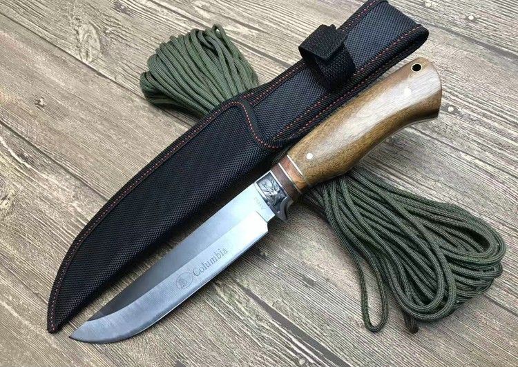哥伦比亚A3183战术直刀 全 长:31cm 刃 长:18cm 刃 宽:3.7cm(最宽处) 刃 厚:4cm 柄 长:13cm 柄 厚:2.5cm 表 面:雕刻 刃 材:3CR13 硬 度:57HRC 柄 材:酸枝木 重 量:370克(含包装) 包 装:尼龙套