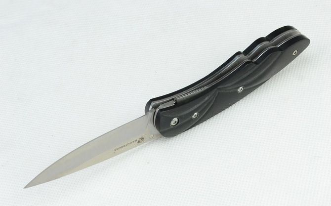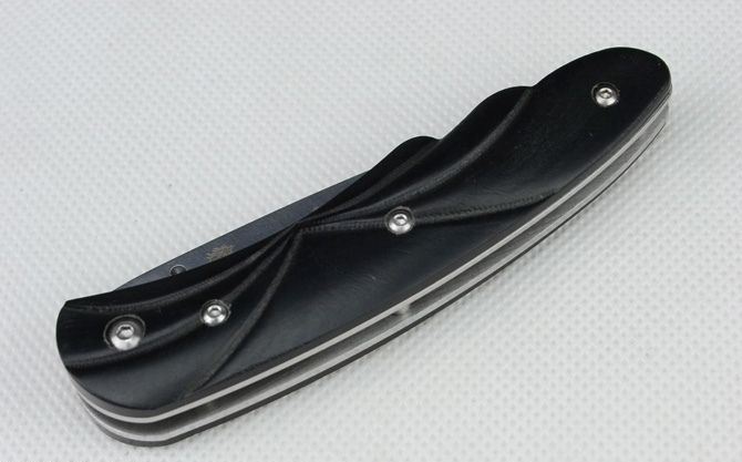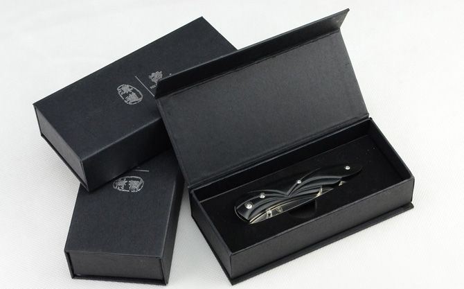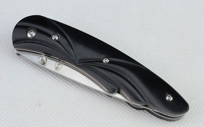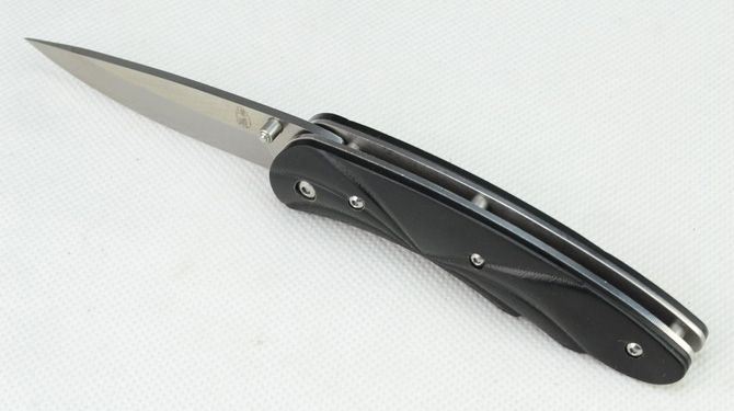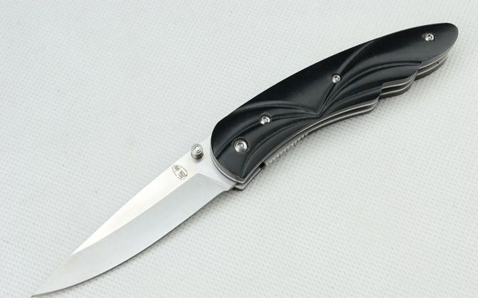汉道黑雀折刀 全长:18.8CM 刃长:8CM 刃厚:0.26CM 刃宽:2CM (最宽处) 刃材:440 硬度:56 柄长:10.8CM 刃面:七彩丝光 柄材:亚克力 净重:95克 毛重:178克 锁定:侧锁 包装:精美礼盒