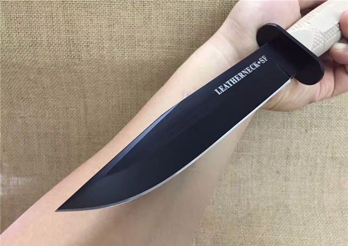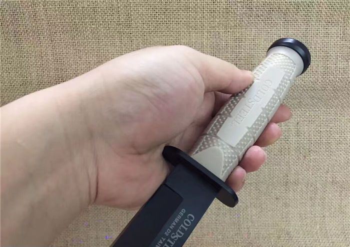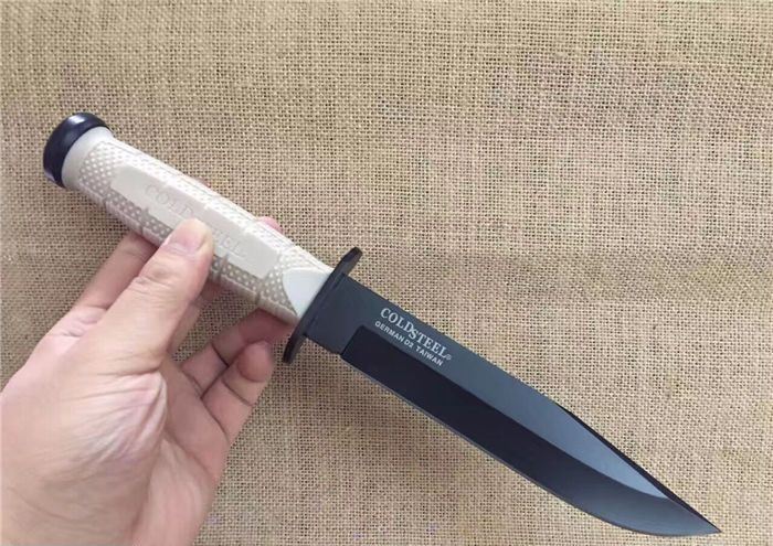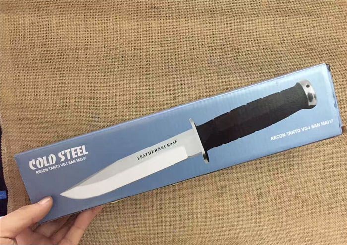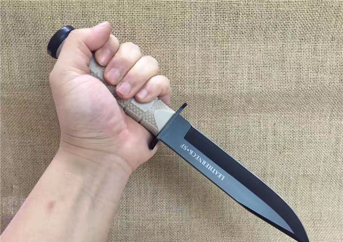 新版冷钢39LSFDT丛林军刀黑钛沙漠柄 全 长:29.8cm 刃 长:17.5cm 柄 长:12.5cm 刃 宽:3.4cm(最宽处) 刃 厚:4.8mm 刃 材:5CR13MOV 硬 度:56-58HRC 刀 柄:加厚保手和可以撞击硬物尾锥,玻纤防滑手柄。 表 面:黑钛 刀 重:280克 重 量:410克(含包装) 备 注:原厂礼品盒,优质玻纤鞘,可以拴大皮带,方便取刀