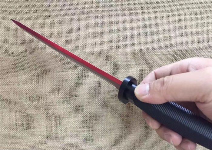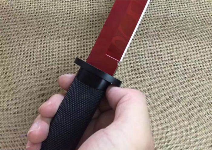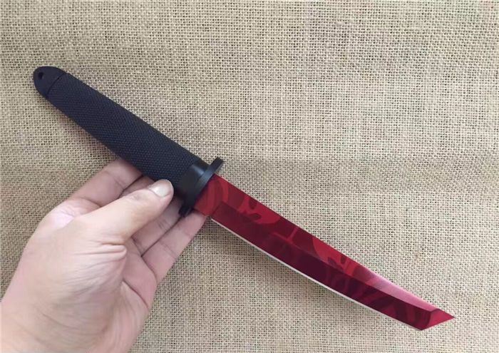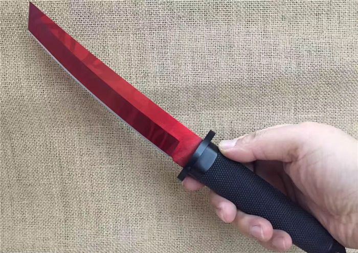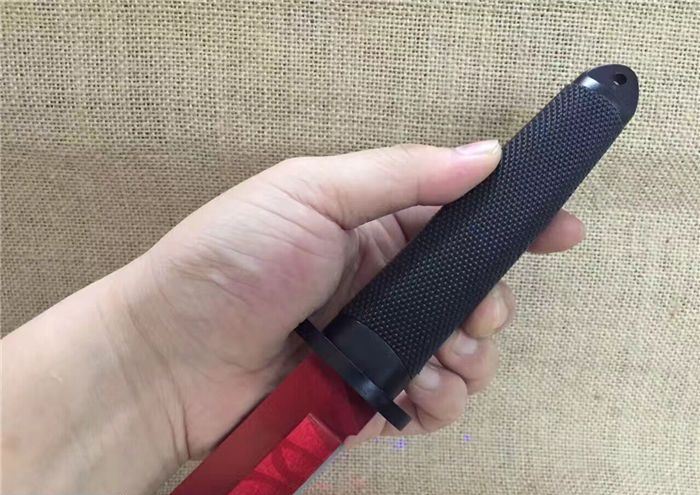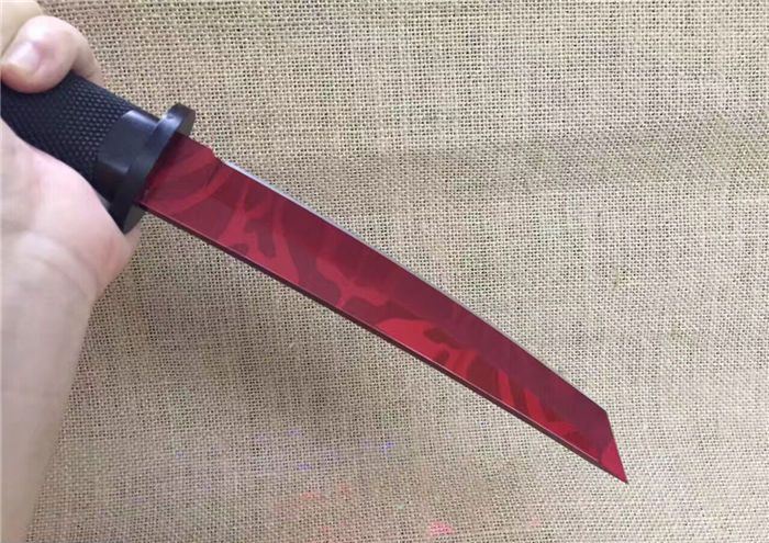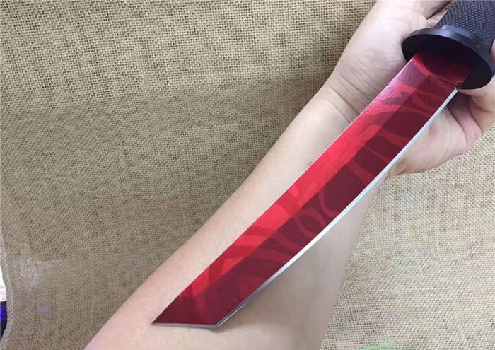 冷钢三美小武士刀红魔版 全长:320mm 刃长:190mm 刃厚:4mm 刃材:5cr13mov 表面:砂光 柄材:ABS 重量:400g含刀套 配皮套
