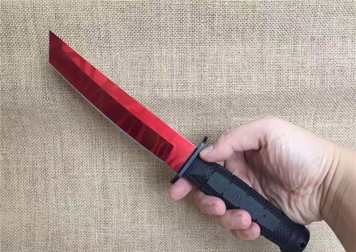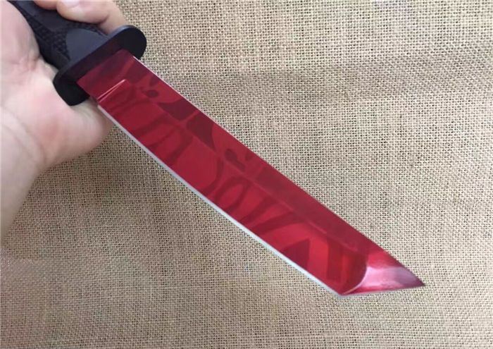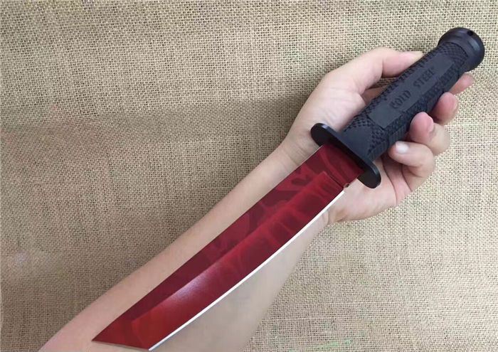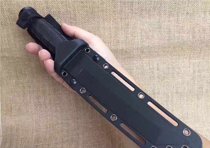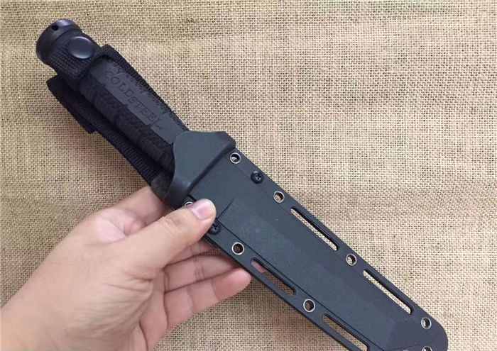 冷钢39LSF海路求生刃红魔版 全 长:298mm 刃 长:174mm 刃 材:7Cr 硬 度:58HRC 表 面:砂光/发黑 刃 厚:4.8mm 柄 材:ABS 重 量:315g 刀 鞘:Kydex鞘