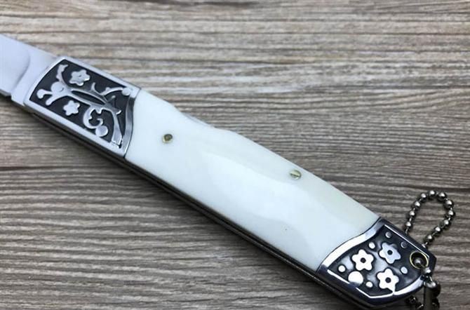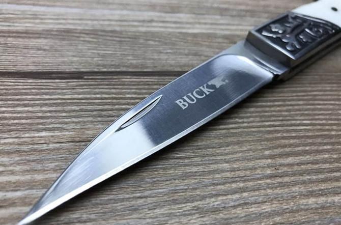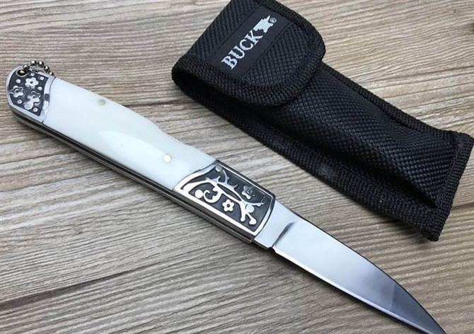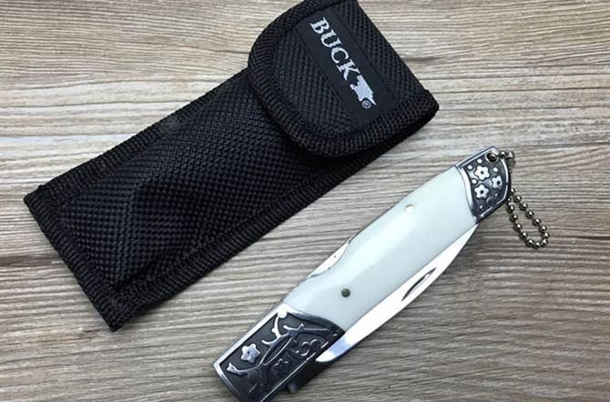 巴克海草折刀 全 长: 20.2cm 刃 长: 8.8cm 刃 宽: 1.9.cm(最宽处) 刀 柄: 11.4cm 硬 度: 57HRC 刃 厚: 0.25cm 重 量: 200克 表 面: 镜光 刃 材: 440C 柄 材: 全钢头雕花 锁 闭: 传统式制尾锁 其 他: 尼龙套包装,刃口锋利