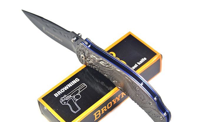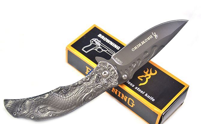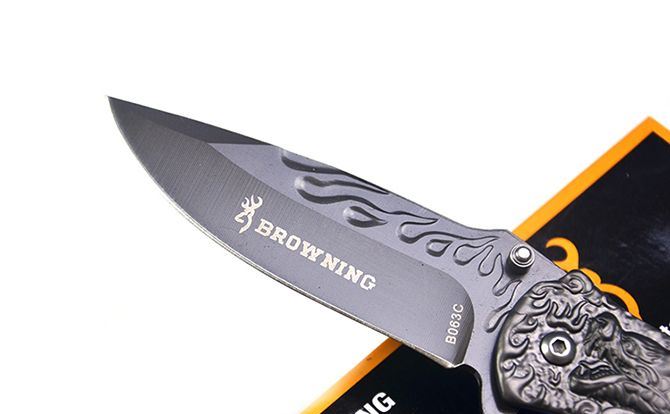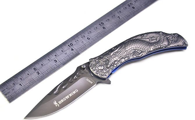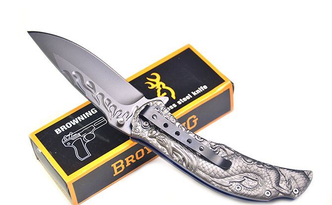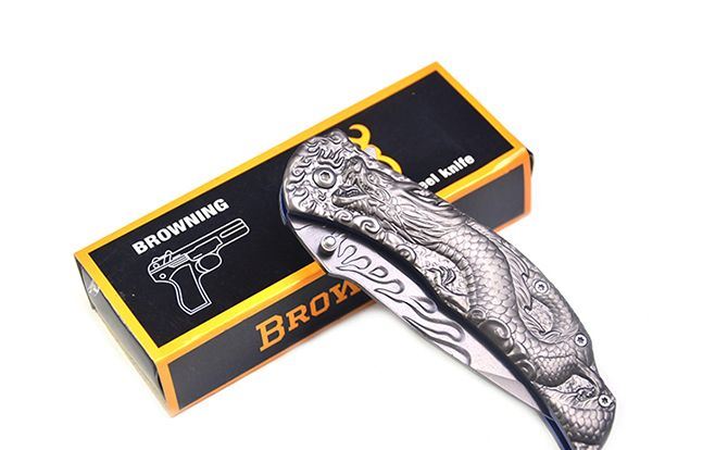 勃朗宁B063浮雕神龙灰钛快开折刀