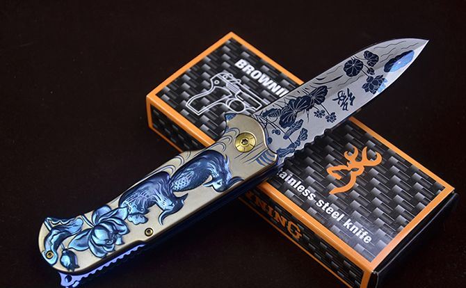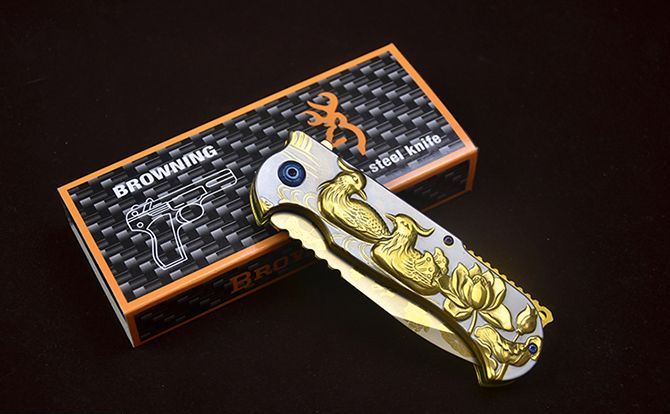 勃朗宁B031浮雕鸳鸯快开折刀