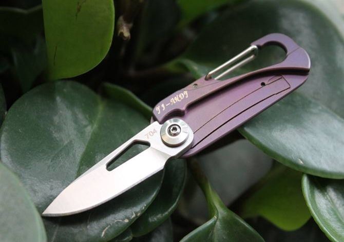 紫色迷你高端钛一体柄小扣折刀