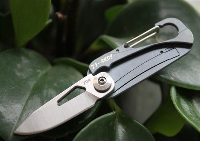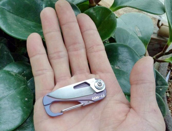 蓝色迷你高端钛一体柄小扣折刀