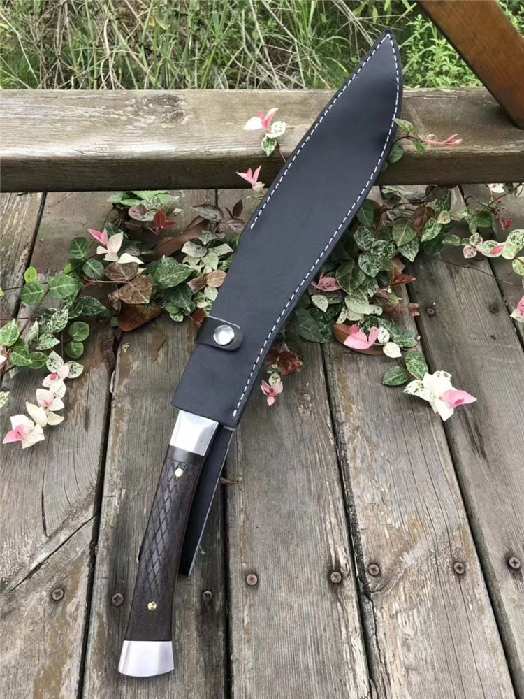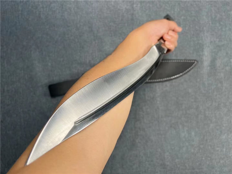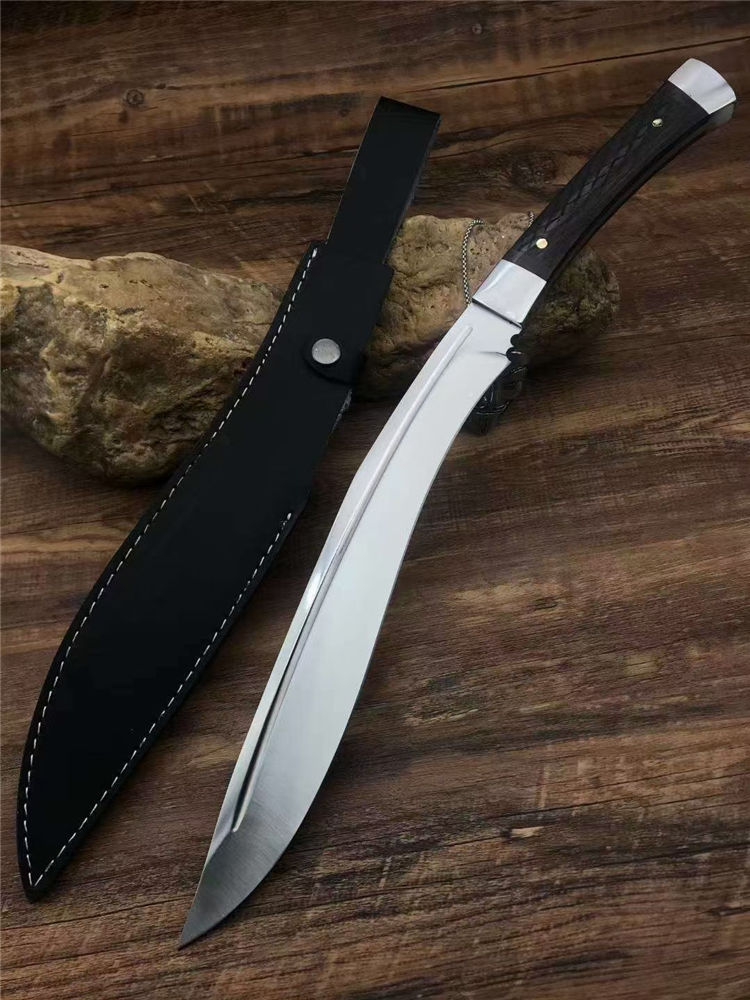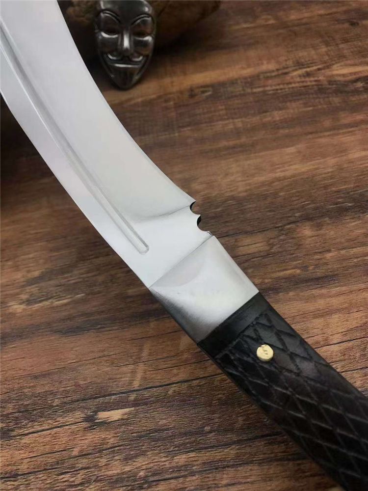 全长:47.3cm 刃长:29.5cm 柄长:17.8cm 厚度:5.8mm 硬度:58 钢材:进口高碳钢 柄材:黑檀木 表面:超镜光(一体龙骨) 单刀重量:900g