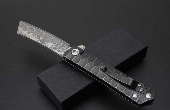 必杀剃刀大马士革钢折刀 总体长:205mm 叶片长度:85mm 封闭长度:121毫米 叶片厚度:3.5mm 刀片:大马士革钢 重量:196克 含包装 叶片材料:大马士革钢 柄材料:钢 硬度:58HRC