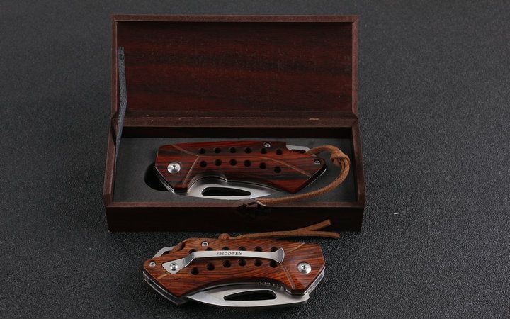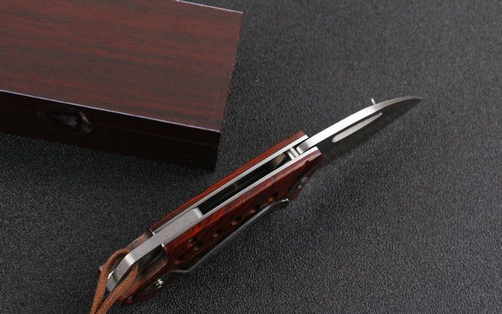 自由狼小黄蜂折刀D2钢 全 长:15.0cm 刃 长:6.2cm 柄 长:9.2cm 刃 宽:3.2cm 刃 厚:3.0mm 刃 材:D2钢 刀 重:92g 总 重:162(含包装) 硬 度:56-57HRC 表 面:精细沙光 柄 材:微粒黄檀木 锁 型:侧锁 其 他:高档木盒