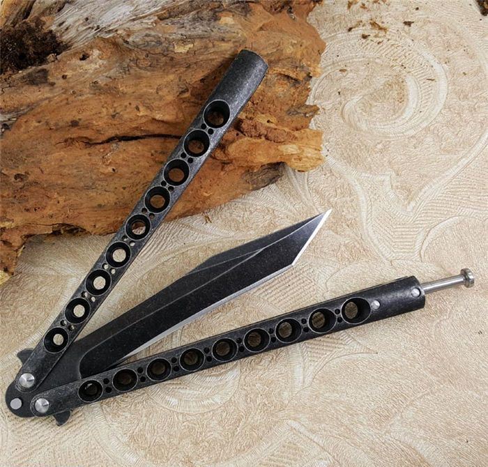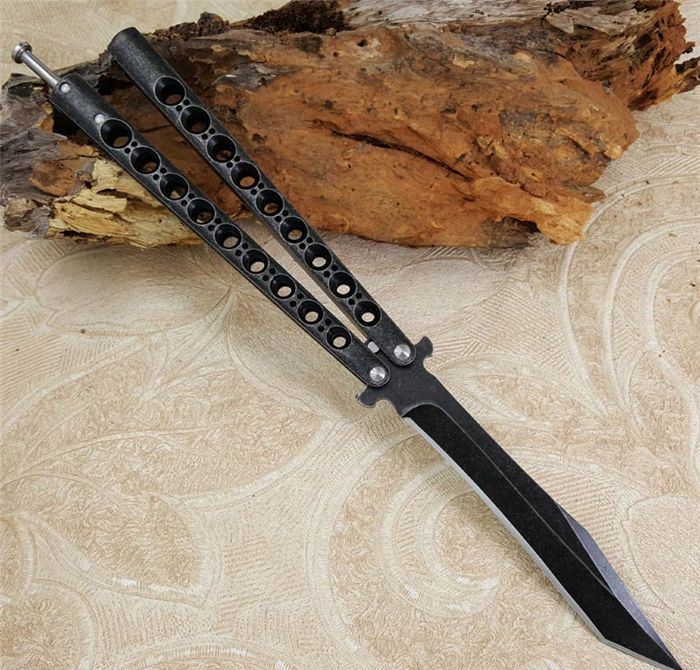 军标The One 黑鸟II一体柄蝴蝶甩刀全黑石洗