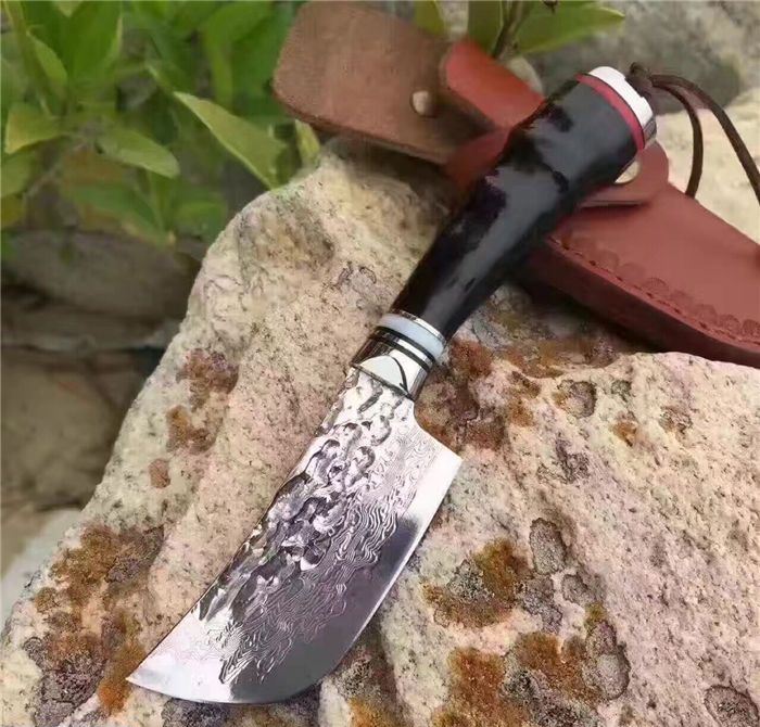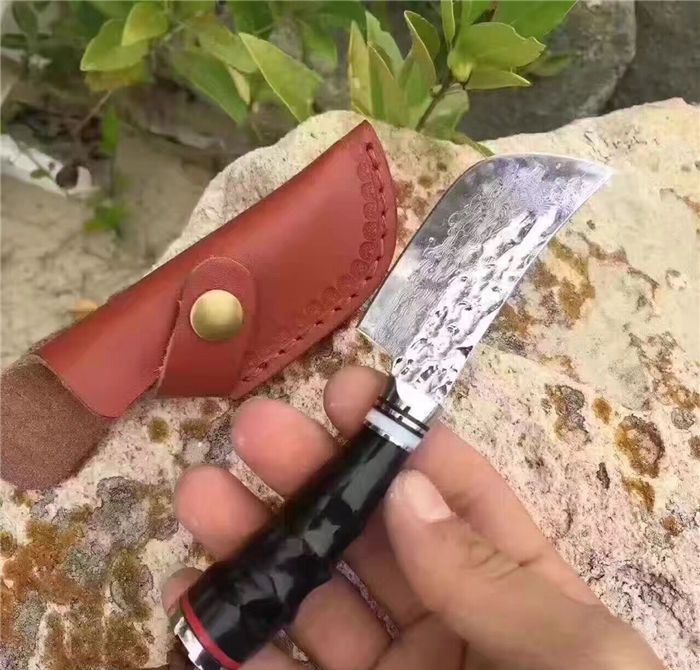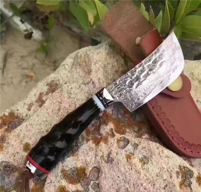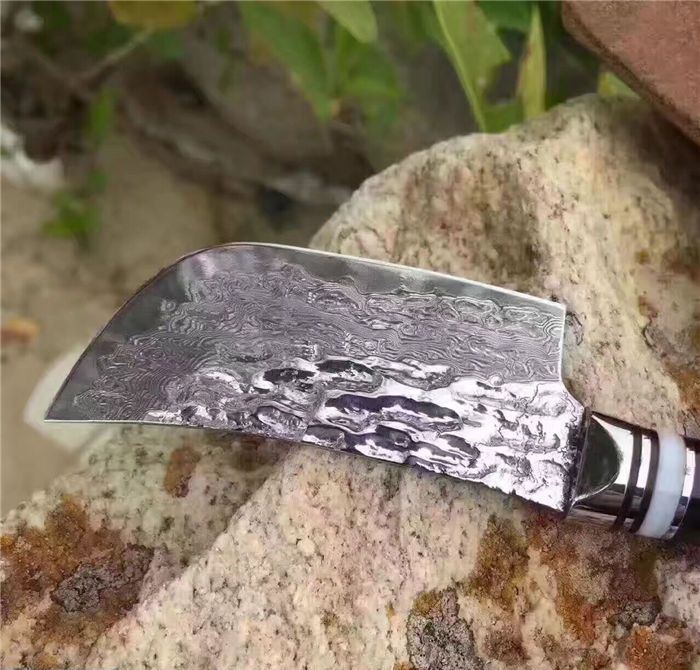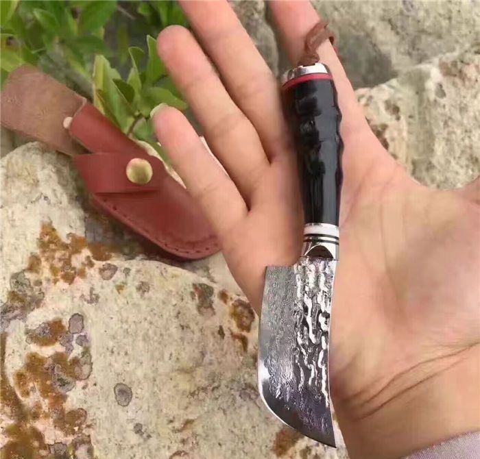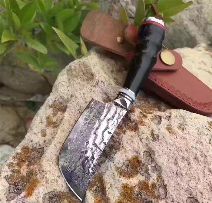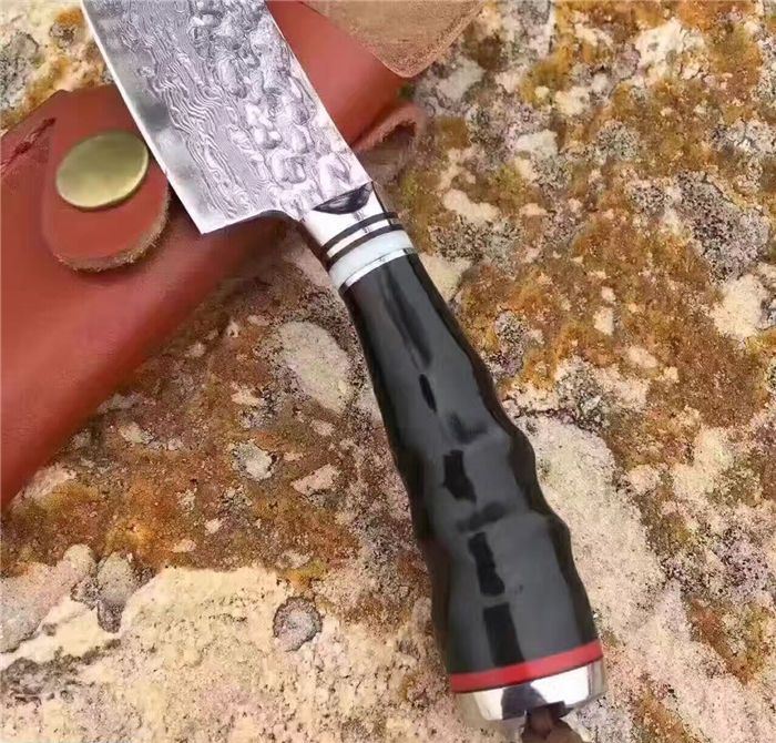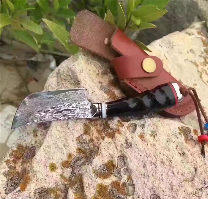 余月牛角柄小菜刀 全长:15cm 刃长:7cm 柄长:8cm 厚度:3mm 硬度:59HRC 钢材:大马士革钢VG10 手柄用料:白钢头+牛角、尾部可穿各种吊坠 配套包装:高端牛皮刀套、硬黑印花礼品盒 锋利度超越刮胡子