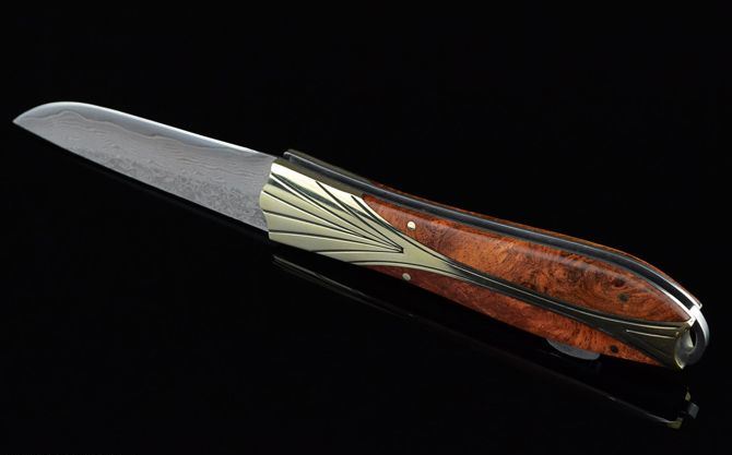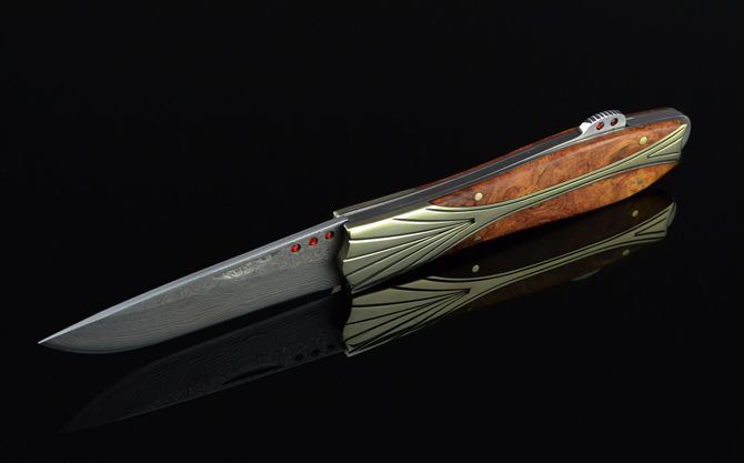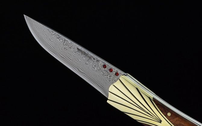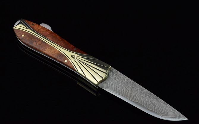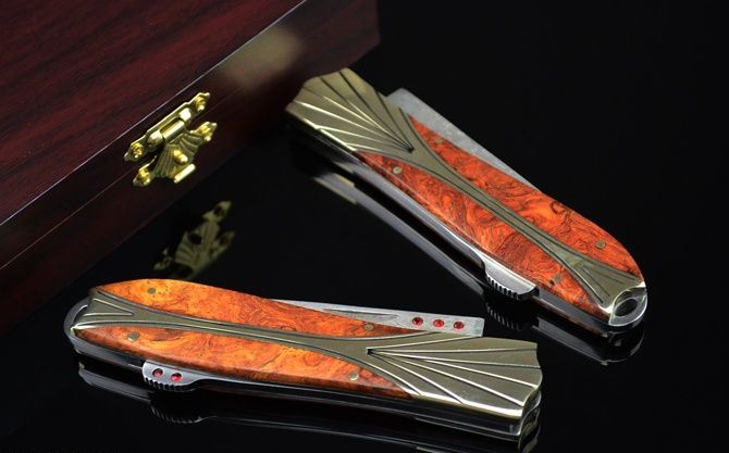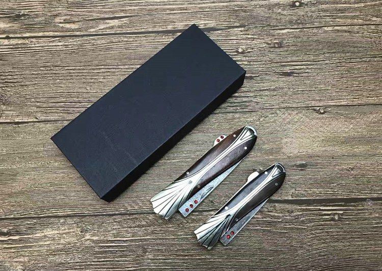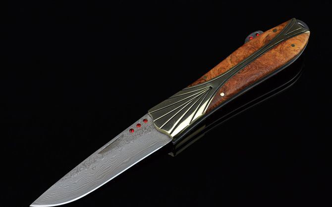 大号小红星大马士革折刀 全 长: 19.8cm 刃 长: 8cm 刃 宽: 2.2cm(最宽处) 闭 合: 11.7cm 硬 度: 59HRC 刃 厚: 0.25cm 重 量: 246克(含包装) 包 装: 高档木盒 表 面: 纯手工制造 刃 材: 大马士革 柄 材: 仿红宝石水晶+黄铜+红影木 锁 闭: 背锁 其 他: 刃口锋利 大马士革钢花纹和把手木纹及颜色各异,以实物为准