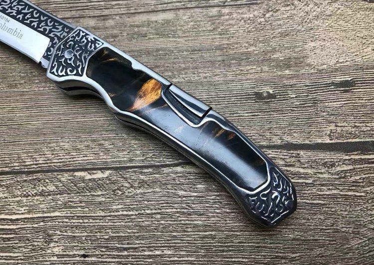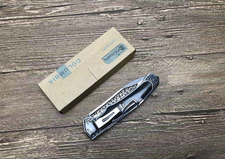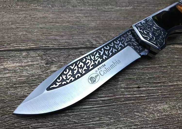 哥伦比亚A3154战术折刀 全 长:23.2cm 刃 长:10.2cm 柄 长:13cm 刃 宽:2.7cm 刃 厚:3mm 刃 材:7Cr13Mov 硬 度:56HRC 表 面:拉丝 柄 材:全钢雕花+彩木 重 量:250g(含包装) 锁 型:安全锁 包 装:纸盒 备 注:带腰夹