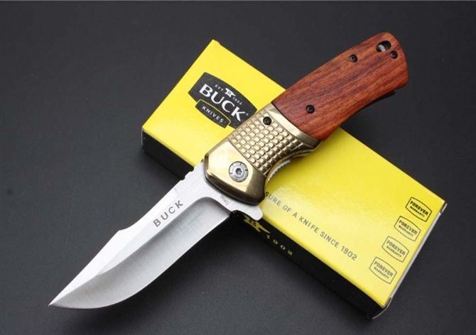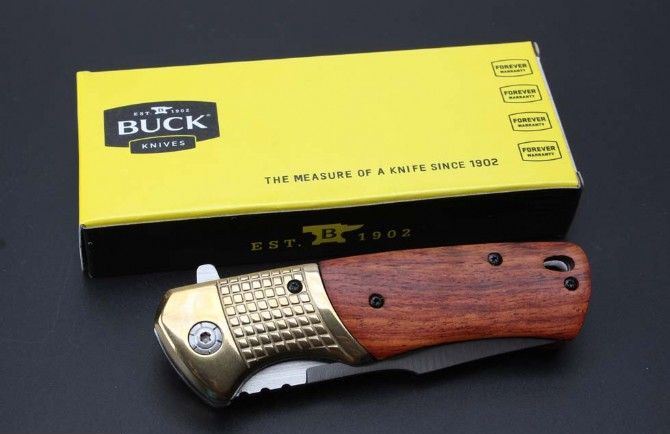 巴克DA96快开折刀 全 长:21.6cm 刃 长:8.9cm 柄 长:12.5cm 刃 宽:2.8cm 刃 厚:0.4cm 刃 材:440 重 量:245g(含包装) 硬 度:58HRC 表 面:沙光 柄 材:钢头+酸枝木 锁 型:侧锁 其 他:彩盒