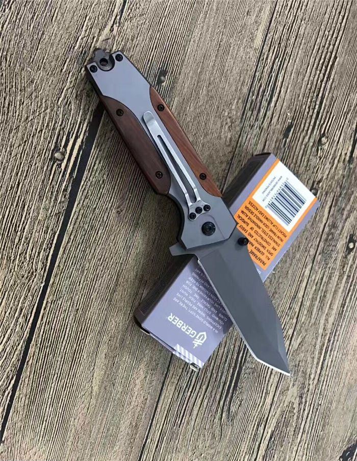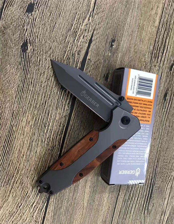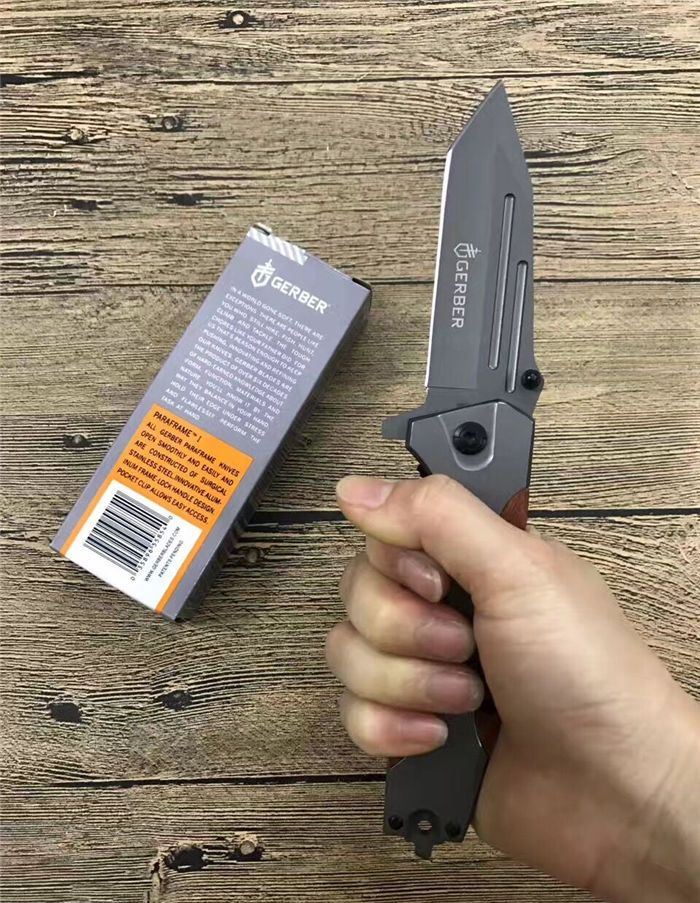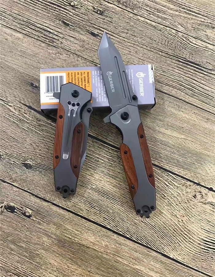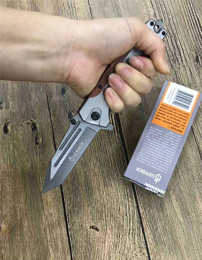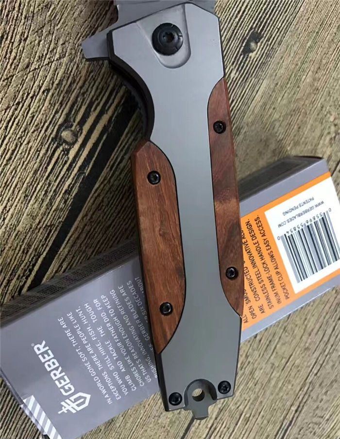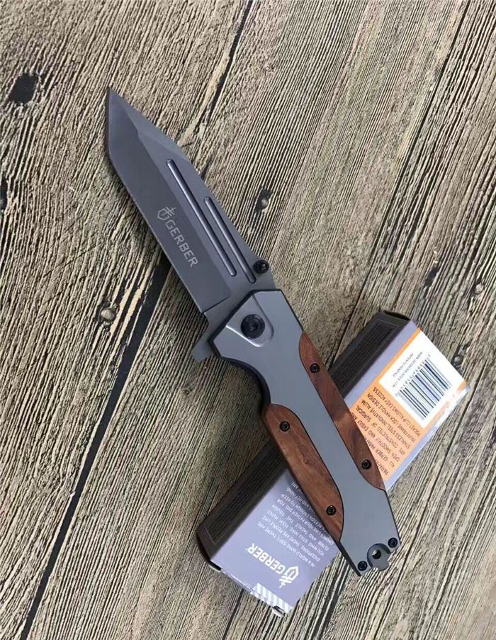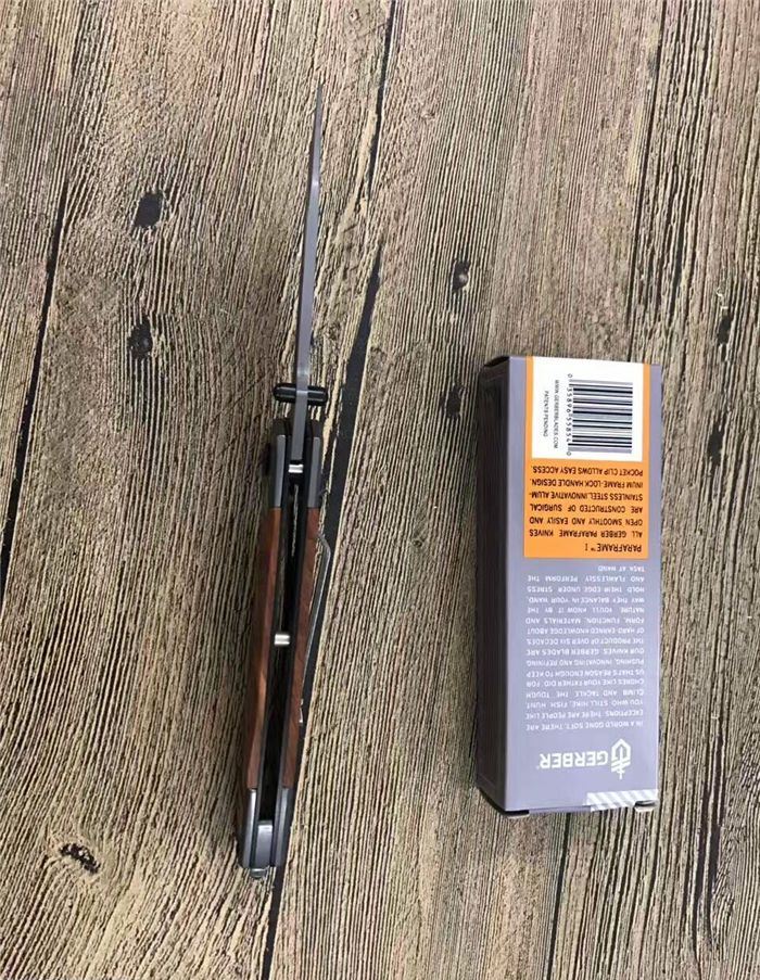 戈博B056快开折刀 全 长:22.5CM 刃 长:10CM 柄 长:12.5CM 刃 宽:3.8CM 刃 厚:0.4CM 刃 材:3Cr13Mov 重 量:225克(含包装) 硬 度:55HRC 表 面:镀钛 柄 材:红木片 锁 型:快开 其 他:配彩盒