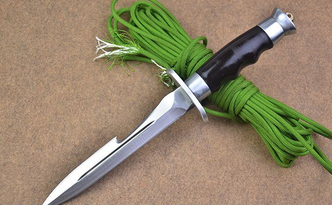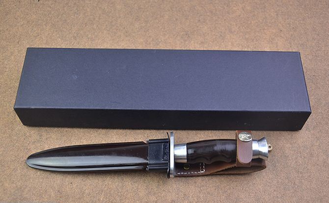 精仿65式伞兵刀 全长:26cm 刃长:14cm 刃厚:0.45cm 刃宽:2.1cm 刃材:7铬17高级不锈钢 柄材:为减轻装备重量,刀柄采用了航空铝材以及ABS工程塑料 硬度:58HRC 刀重:260克(含刀鞘) 总重:450克(含纸盒包装)