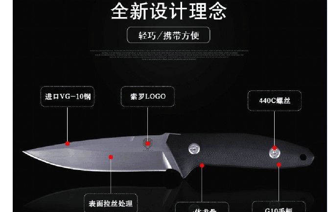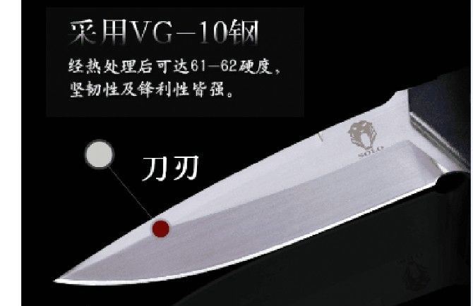 丛林巨人 全 长:253mm 刃 长:125mm 柄 长:128mm 刃 宽:33mm 刃 厚:5mm 刃 材:VG-10 硬 度:61-62HRC{真空热处理) 表 面:拉丝处理 柄 材:复合G10 刀 鞘:进口K鞘