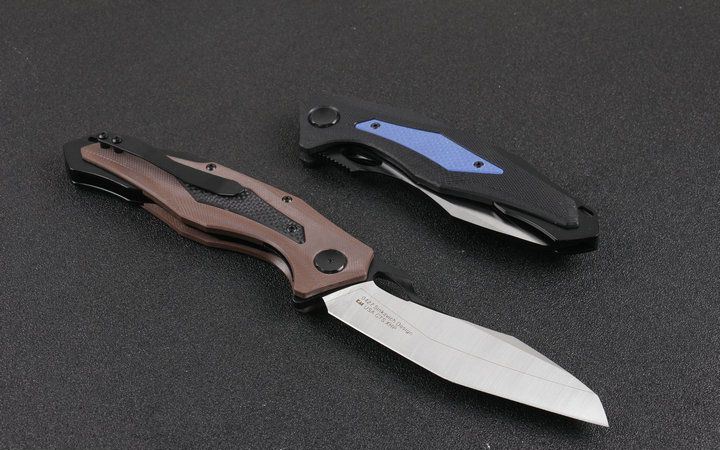 零工差ZT毒蛇两款式 全长:24.2cm 刃长:10.5cm 柄长:13.8cm 刃厚:0.38cm 刃宽:2.7cm 刃材:9CR18MOV 柄材:钢片+防滑G10片。 硬度:58HRC 净重:205克(含包装) 表面处理:人工沙光处理 包装:彩盒+说明书 锁定:线锁,内置轴承。 其它:刀刃分黑色和绿色G0,下单请注明