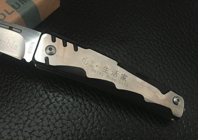 哥伦比亚悦享生活家用折刀 全长:19.5cm 刃长:7.7cm 柄长:11.3cm 刃厚:0.3cm 刃宽:2.2cm 刃材:5CR18MOV 柄材:全钢 硬度:58HRC 净重:230克(含包装) 锁定:线锁 表面处:全刀精细拉丝,工匠的杰作