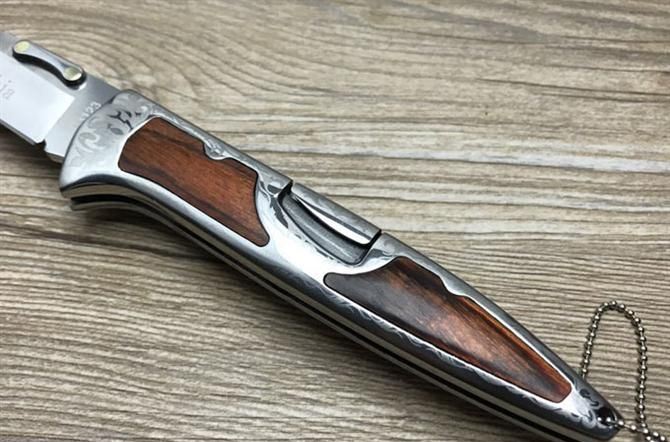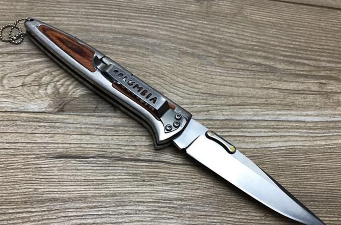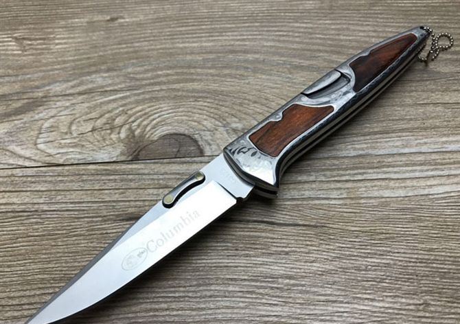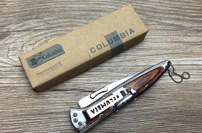 哥伦比亚C3123战术折刀 全 长:20.4cm 刃 长:9cm 柄 长:10.4cm 刃 宽:2cm 刃 厚:3cm 刃 材:3Cr13Mov 重 量:200g(含包装) 硬 度:56HRC 表 面:拉丝 柄 材:全钢镭射刻花+彩木 锁 型:线锁 包 装:纸盒 备 注:带腰夹