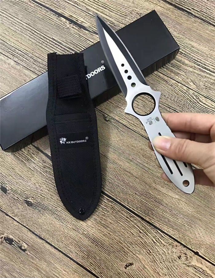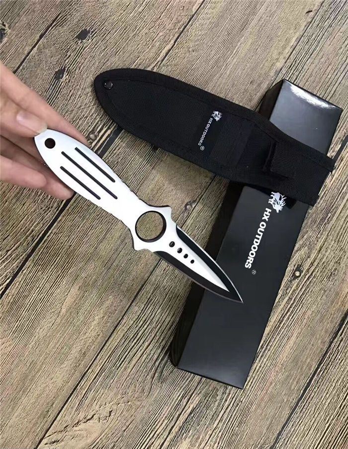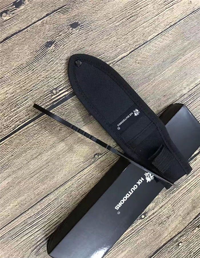 汉道Q03飞镖 全长:20CM 刃长:9.5CM 刃厚:0.5CM 最宽:2.5CM 刃材料:420不锈钢 表面:发黑 重量:650克(含包装) 刀鞘:尼龙+彩合