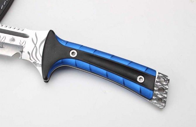 丛林巨鳄直刀 全 长:500mm 刃 长:340mm 柄 长:150mm 刃 宽:58mm 刃 厚:6mm 刃 材:7Cr13Mov 重 量:1080g(含包装) 硬 度:55HRC 表 面:扎花 柄 材:一体钢+铝柄 锁 型:定锁 其 他:牛皮纸盒和皮套