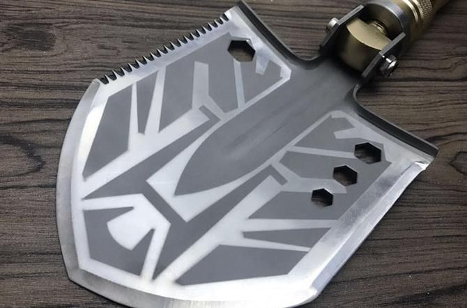 功能:有铲,锄 ,锯,刀,开瓶器,打火棒,撞击器,一字十字螺批等功能,在生产工艺上采用上好淬火高碳钢,增加强度,抗磨损,抗腐蚀,耐高温等优势.有把铲在手,登山,外出永不怕