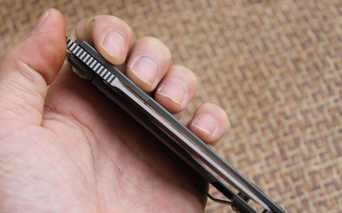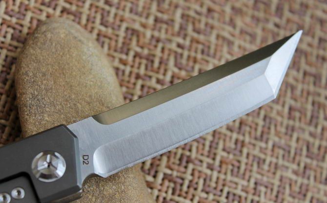 斜开必杀折刀D2钢全钛色柄 总体长:208mm 叶片长度:88mm 封闭长度:118毫米 叶片厚度:2mm 刀片表面处理:缎面打磨 重量:188克 含包装 叶片材料:D2 处理材料:钛 硬度:59-60HRC
