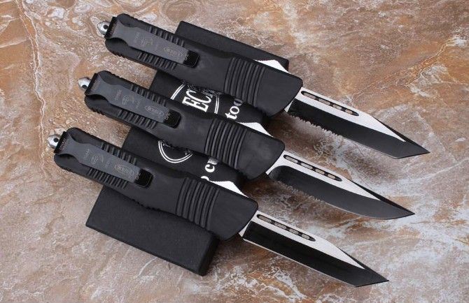 伤齿龙B01直跳刀 全 长: 23.8cm 刃 长: 9.3cm 刃 厚: 3.0mm 刃 材: 440 硬 度: 57HRC 刀 重: 237g 毛 重: 349g 表 面: 氧化黑 柄 材: 锌铝合金 刀 鞘: 尼龙 锁 闭: 直出弹簧刀