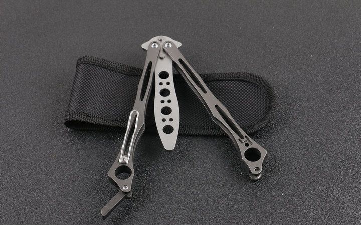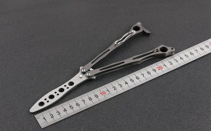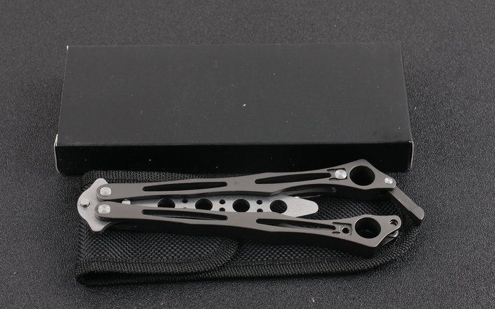 蜘蛛飞毛腿训练刀 全 长:24.2cm 刃 长:9.8cm 柄 长:13.4cm 刃 宽:1.8cm(最宽处) 刃 厚:3.0mm 刃 材:5CR15MOV 硬 度:57HRC 刀 柄:全钢柄 表 面:灰钛 重 量:190.0克(含包装) 配原厂包装+说明书