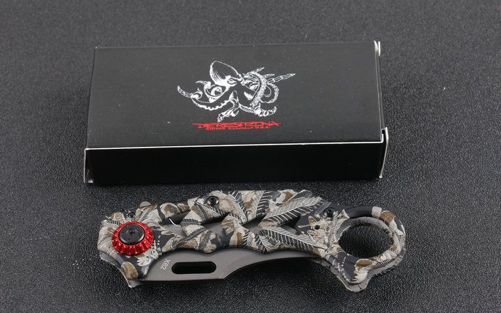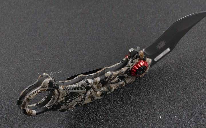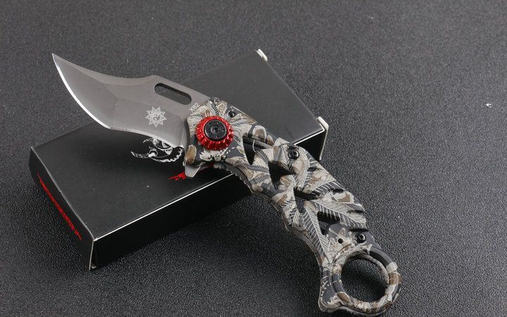 披覆X62爪刀 全长:18.2cm 刃长:6.5cm 柄长:11.7cm 刃厚:0.29cm 刃宽:2.7cm 刃材:5CR15MOV 柄材:全钢片 硬度:57HRC 净重:148克(含包装) 锁定:线锁 表面处:披覆 其他:原厂彩盒