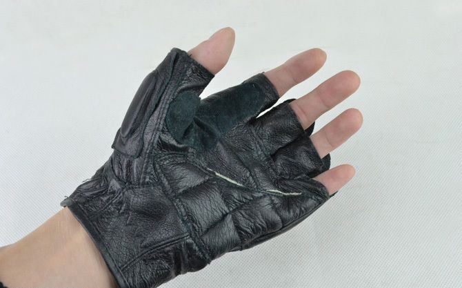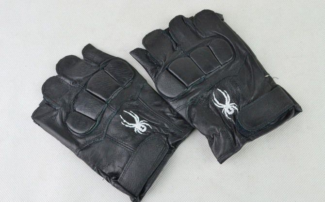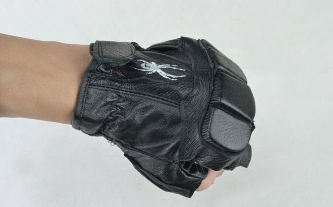 蜘蛛真皮半指战术手套 买家注意:真皮制品刚打开包装的时候会有轻微的皮毛气味,亲们可以在阴凉通风处放置几小时味道就会逐渐减轻,这也是鉴别真皮的一种方法哦. 可选码数:均码 面料:优质牛皮所制,款式新颖,做工精细,皮质结实耐磨。 颜色:黑色 手套尺寸:均码:长16.5cm,掌宽:9.5cm 重量:83克 平铺状态下测量的,中指尖到手腕线的长度为准,尺寸可能会有小小偏差,均能够适合大部分手型。 温馨提示:手套有些弹性,大部分的手型都能佩戴。