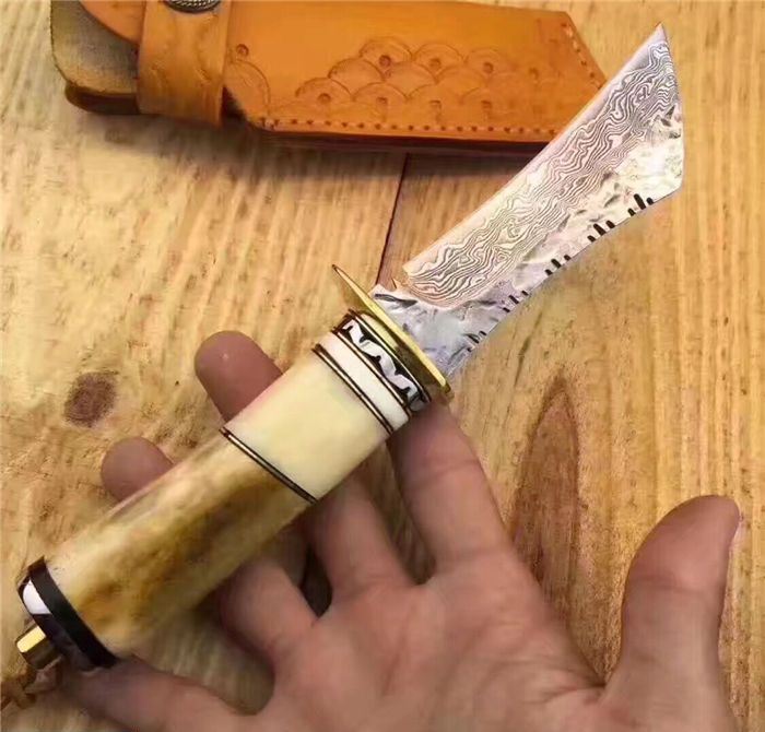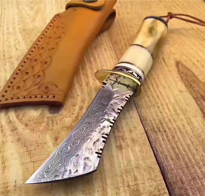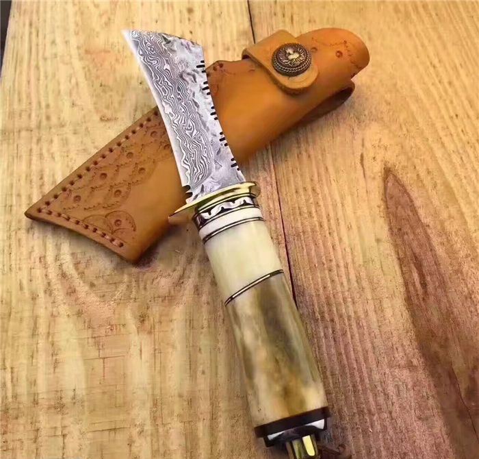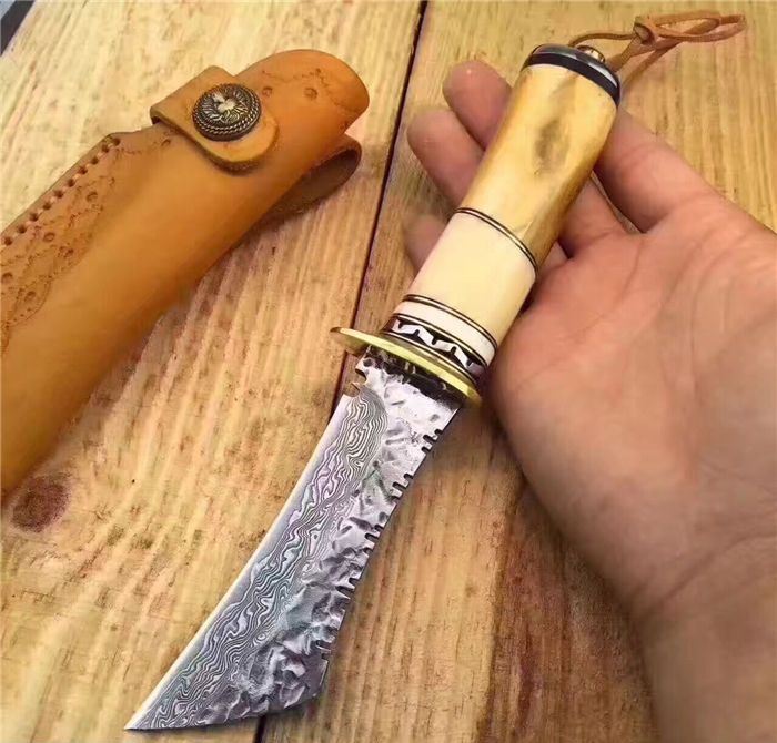 钢材采用:锻打大马士革钢、刀刃背部15段齿牙打磨而成