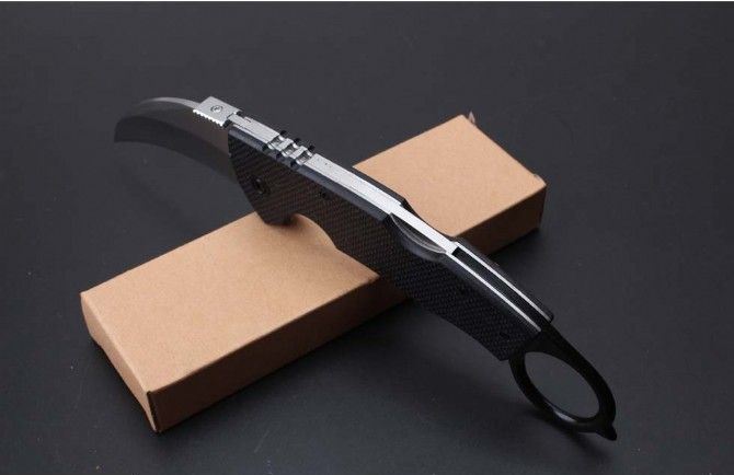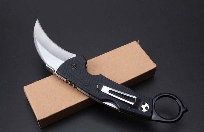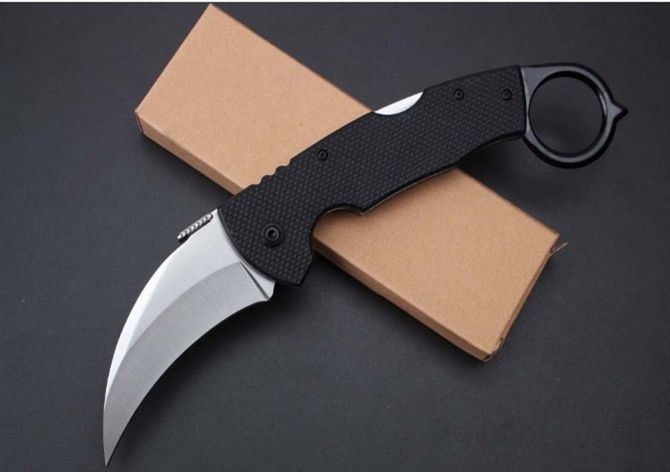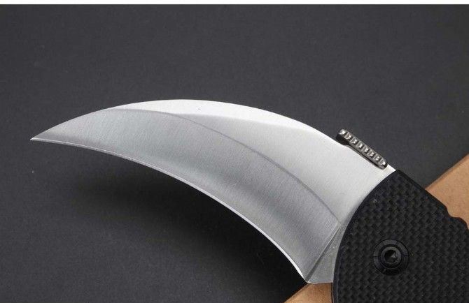 996爪子折刀 全长:230mm 刃长:80mm 柄长:160mm 刃宽:38mm 刃厚:3.1mm 刃材:5Cr15Mov 重量:211g(含包装) 硬度:57HRC 表面:沙光 柄材:钢柄+G10 锁型:背锁 锁型:侧锁 其他:配彩盒