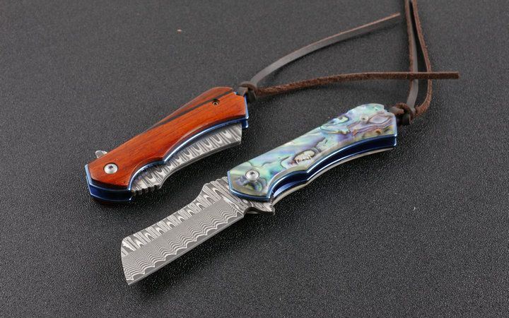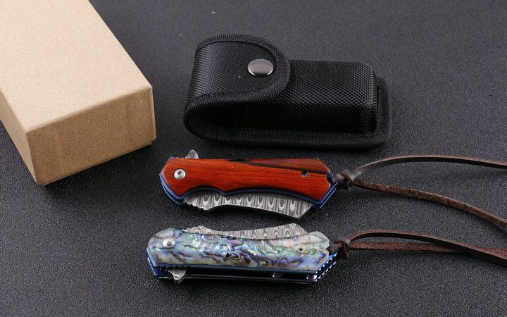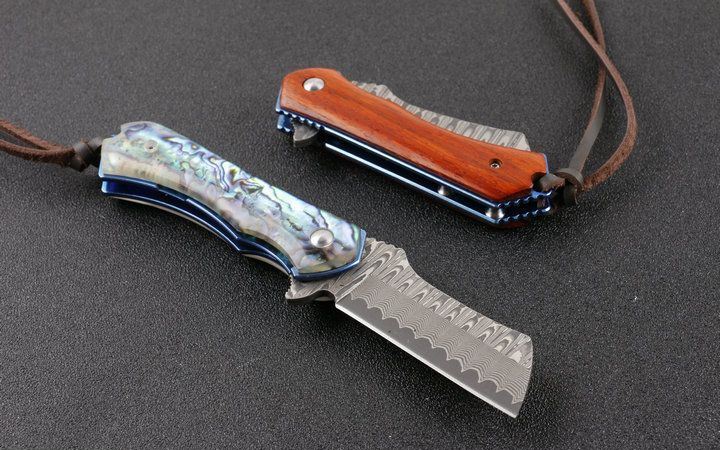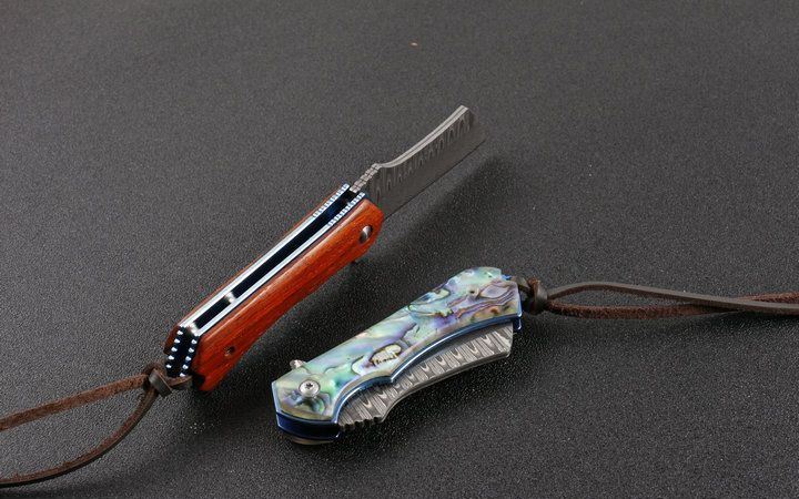 柄材:蓝钛钢片+(天然微粒红檀木+天然鲍贝)下单要注明