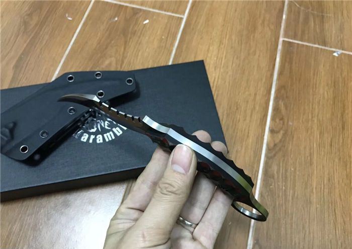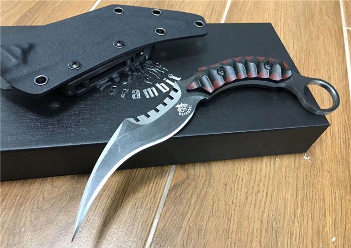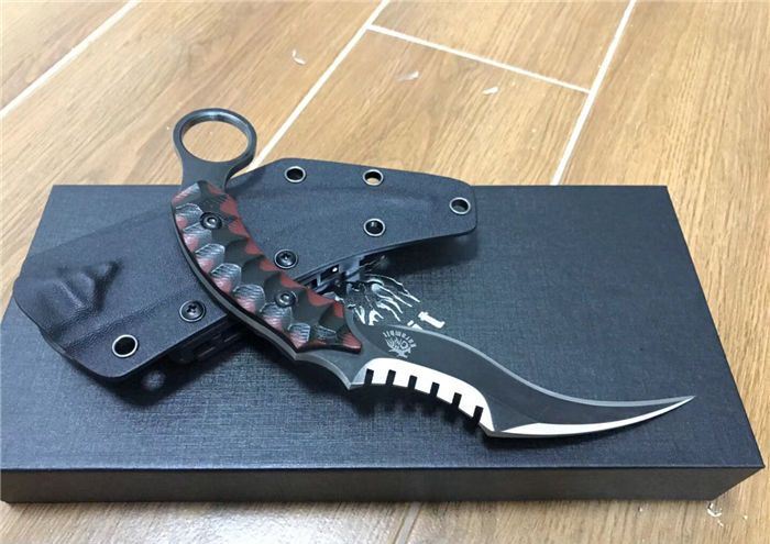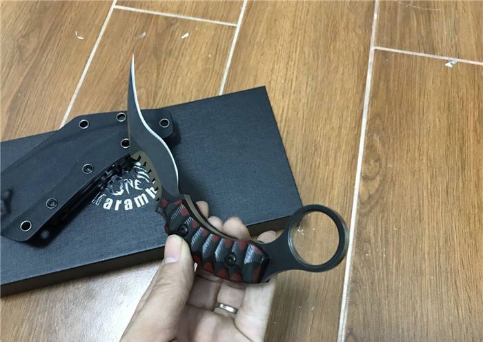 THE ONE赤练蛇爪刀 全长:22CM 刃长:12.2CM G10柄长:8.2CM 刃厚:0.5CM 刃材料:D2 硬度:59-60HRC 表面:沧桑石洗+砂光 刀套:美国进口Kydex 重量:300克(带鞘) 刀柄:A级G10 其它配精品礼品盒