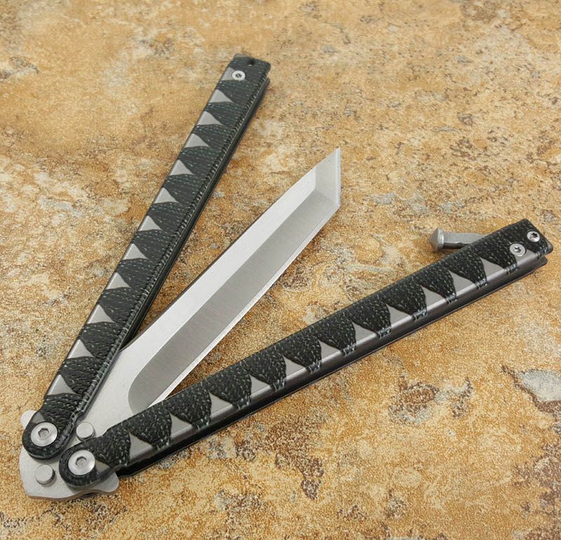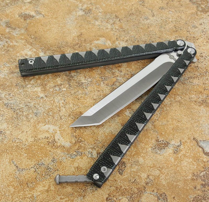 Theone精品武士蝴蝶甩刀,创意武士刀款型!Tanto武士刀刃,拉丝配缎光440C锋刃, 武士刀缠绳柄纹理钢柄,秉承Theone 优质血统