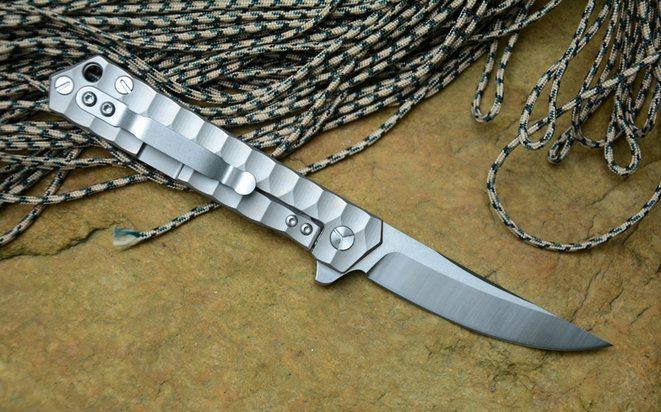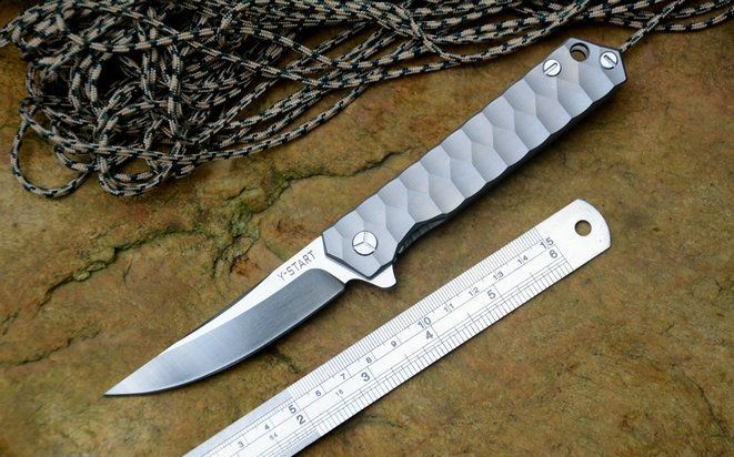 随风版白色武士折刀 总长: 208 mm 刃长: 87 mm 手柄: 121 mm 刃厚: 3.5mm 刃宽: 20 mm(最宽处) 刃材: 440C(真空热处理) 表面处理:石洗后数控精磨 硬度: HRC60 手柄材料: 钛合金TC4 (CNC三维精雕花纹) 净重: 105 g 包装: 黄色硬纸盒