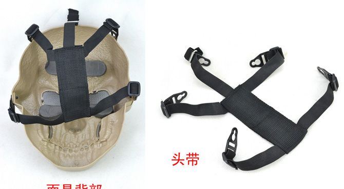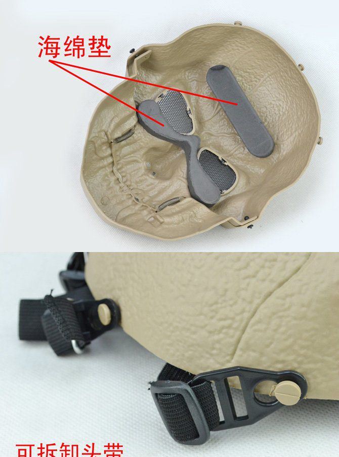 根据网游《战地双雄》真人最新开发的实物面具,采用高强度树脂玻璃纤维合成材料,能承受190PS或以上冲击力,脚踩都不烂!眼睛处网孔3mm宽 厚度2mm,面具内有舒适的缓冲垫,可防止额头的汗流入眼镜,A形软垫阻止气流影响眼镜并使佩戴更舒适,在使用时可轻松佩戴头盔、耳机、眼镜。。。