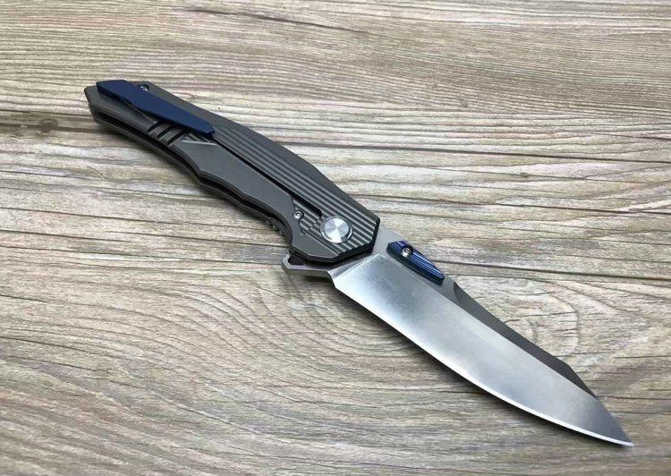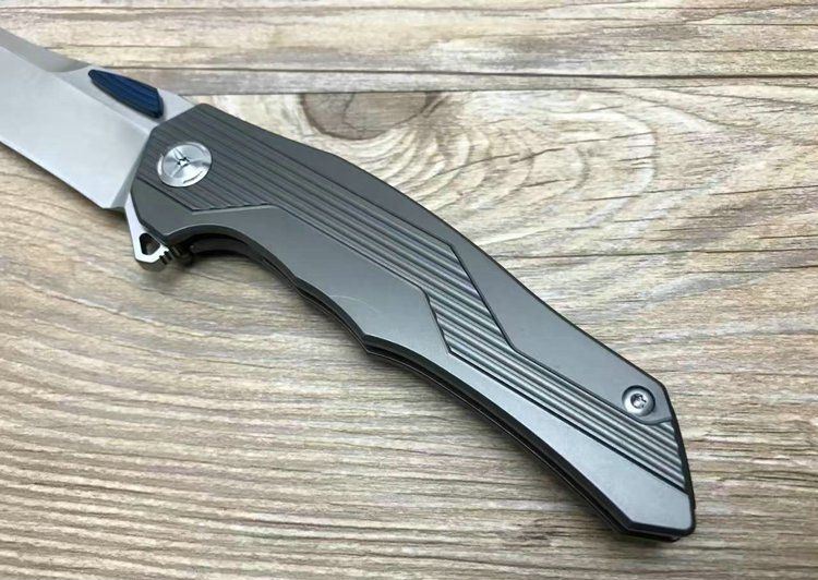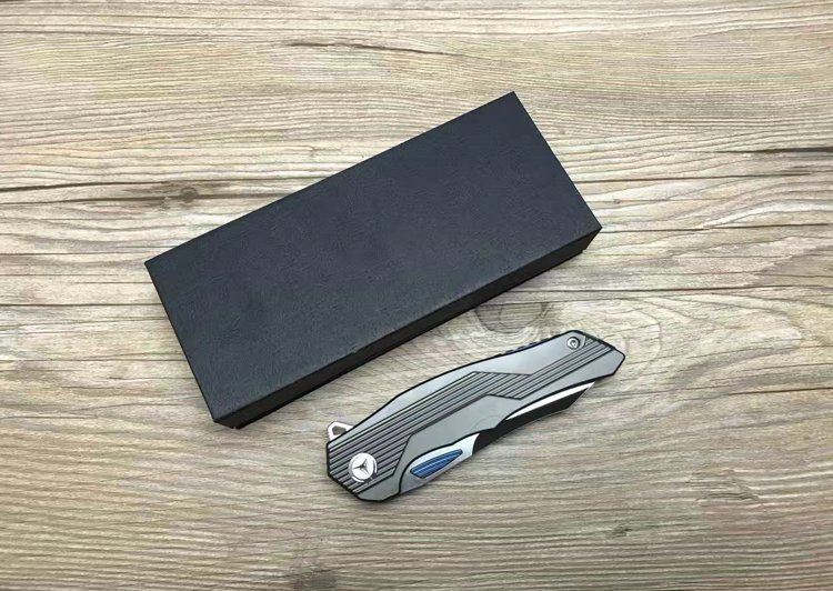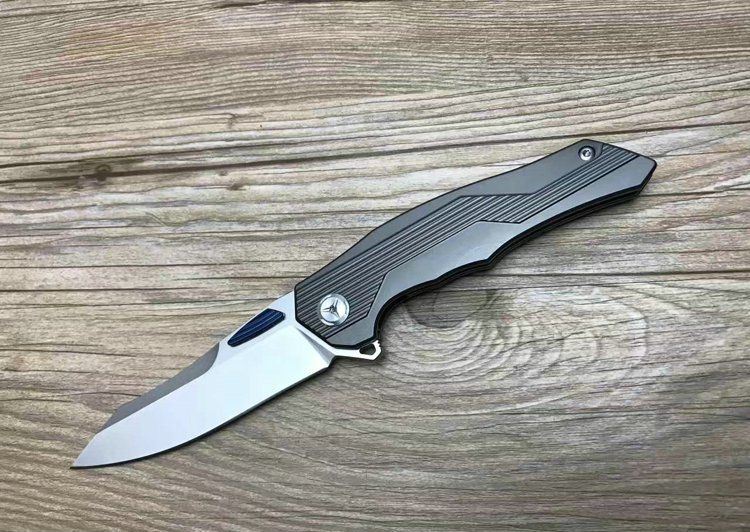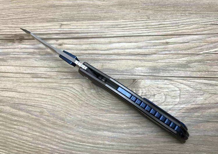 最新的拔手钉快开方式,开合更加顺畅,全钛刀柄,;刀片采用D2材料,全手工打磨,线条流畅;最高要求的精准的外六角止位钉,更显工艺高超;内嵚式合金锁位片,使刀柄表面光滑,给人最美观感!这就是全新的