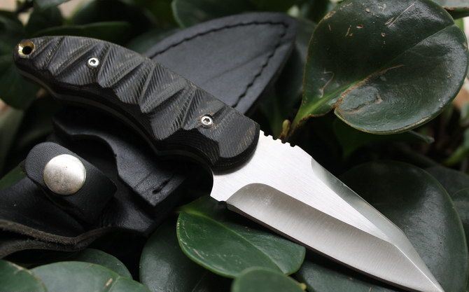 博克八字蛇直刀 全长:18.5cm 刃长:7.5cm 柄长:11cm 刃厚:3.9mm 刃材:5Cr15(采用真空热处理,再经过零下80度的深冷处理) 硬度:55-57HRC 柄材:米克塔(CNC电脑锣精密加工成型,精细手工打磨处理) 刀鞘:牛皮 刃面处理:砂光