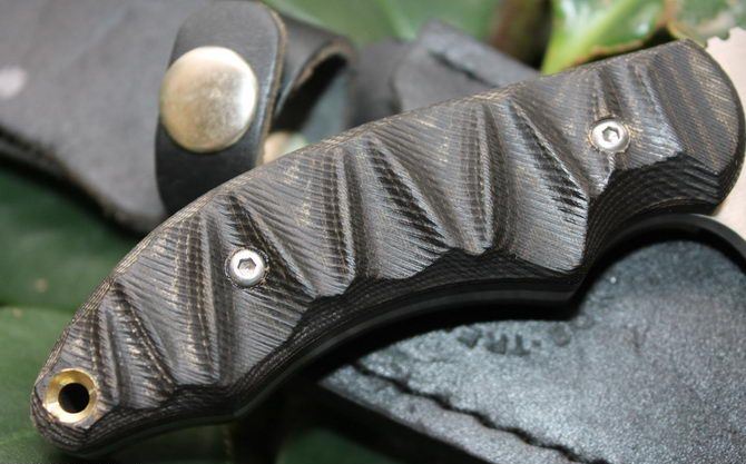 全长:18.5cm 刃长:7.5cm 柄长:11cm 刃厚:3.9mm 刃材:5Cr15(采用真空热处理,再经过零下80度的深冷处理) 硬度:55-57HRC 柄材:米克塔(CNC电脑锣精密加工成型,精细手工打磨处理) 刀鞘:牛皮 刃面处理:砂光