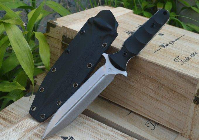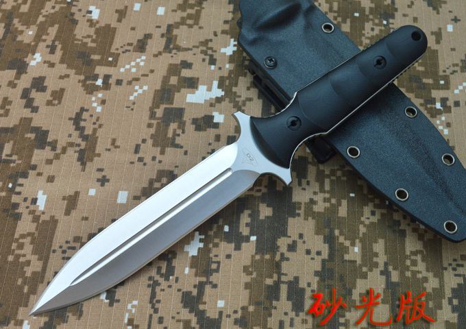 LW2017破煞Ⅱ双刃战术刺 刃材:D2 全长:272mm 刃长:150mm 刃厚:5.3mm 刃宽:29mm 表面:精幼砂光/沧桑石洗 磨式:平磨 硬度:HRC59-60(真空油淬热处理) 手柄:G10+表面防滑处理 刀鞘:进口Kydex鞘 刀重:240G 总重:475G(包括K鞘,包装盒等) 包装:黑色礼品盒