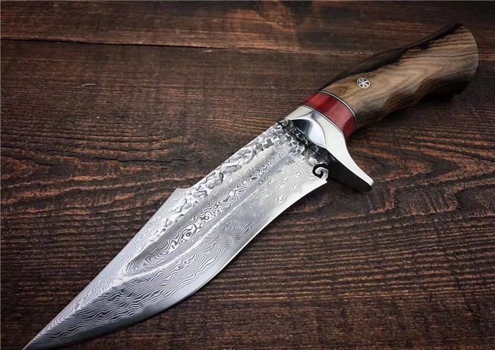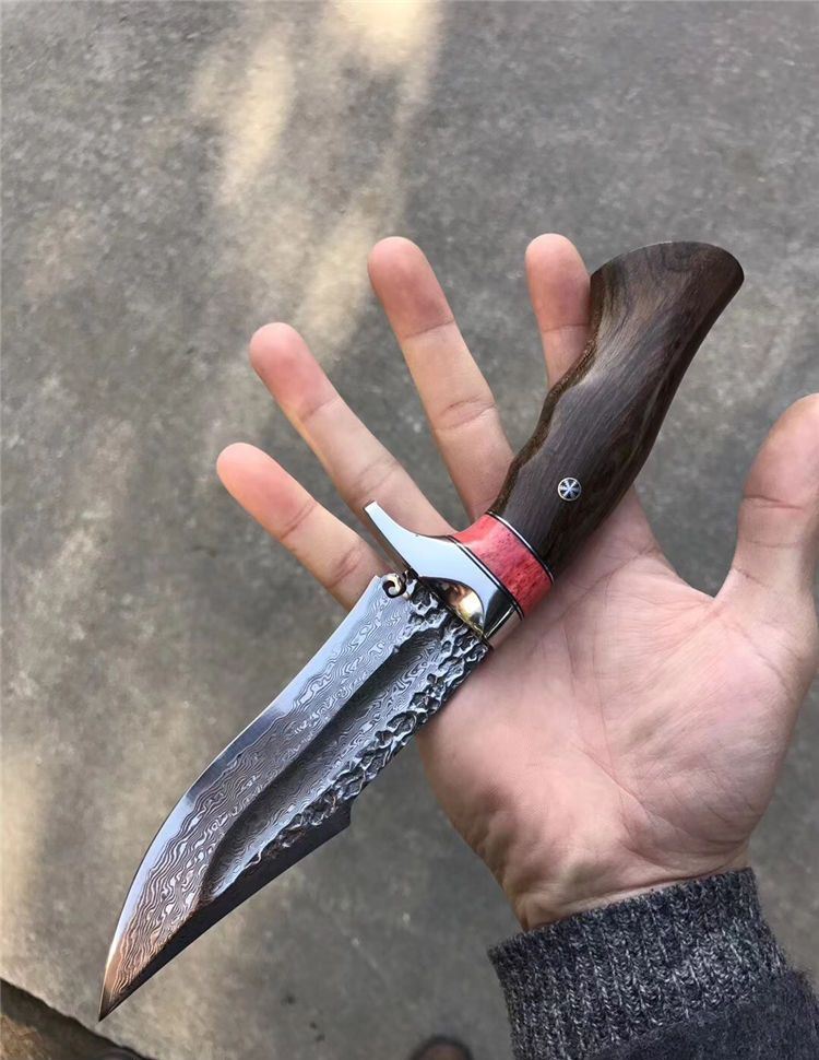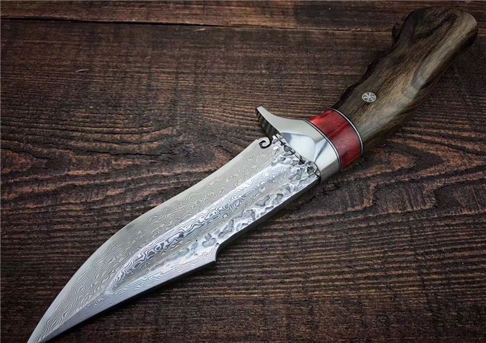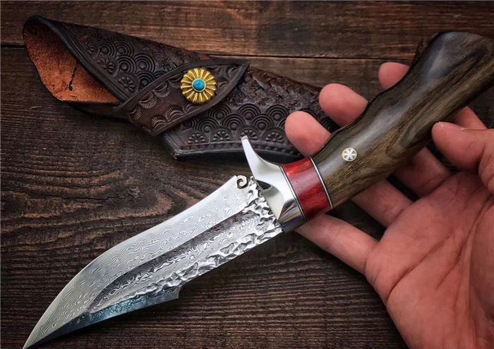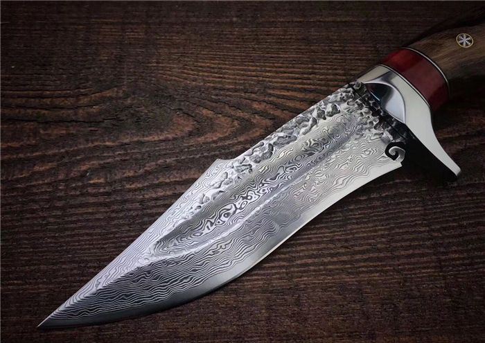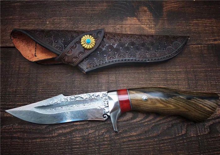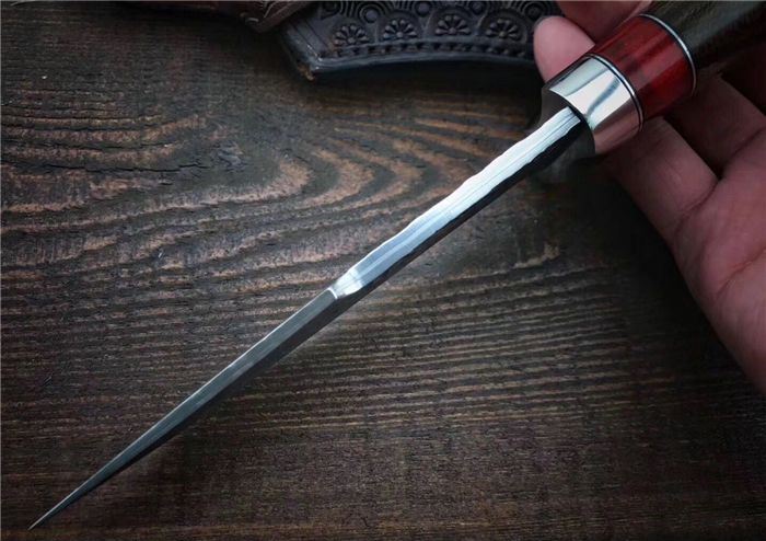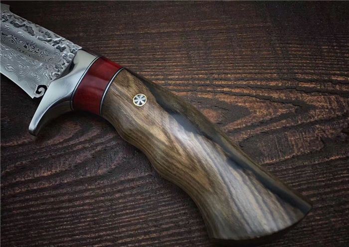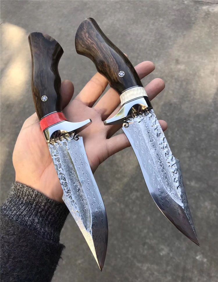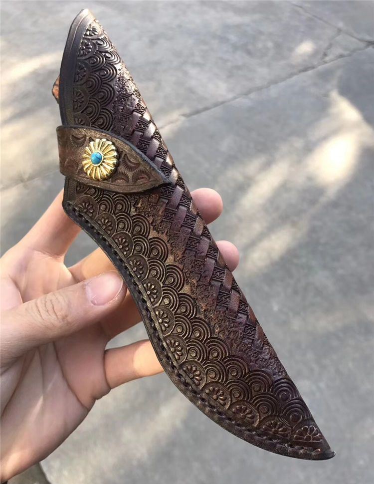 全长:25cm 刃长:12cm 钢材:大马士革钢 刃宽:3.5cm 刃厚:4mm 硬度:60HRC、真空热处理 手柄材料:进口影木黑檀+红骆驼骨+牛骨 重量:195.8g(净重) 包装:高端精致礼品盒 做工非常出色、佩戴/高端纯手工意大利缝线刀套