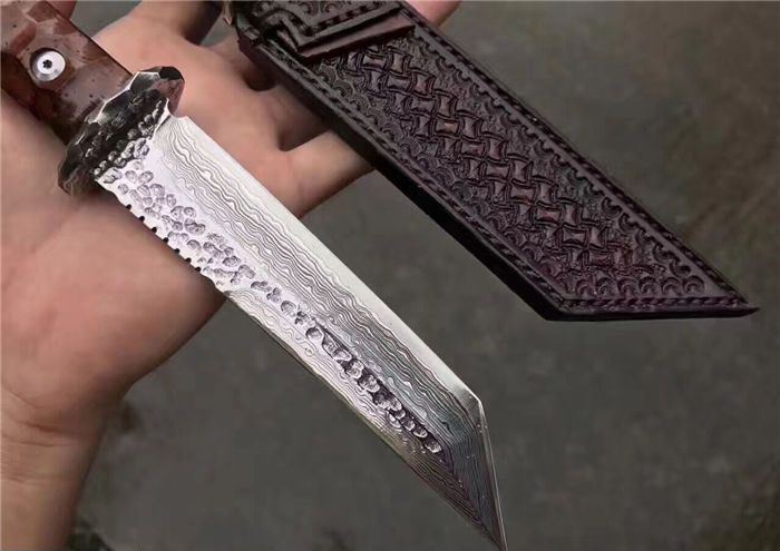 注意:手工刀每一把都是独一无二,刀刃花纹每一把都不一样,并不是激光上去花纹!配大马士革吊坠葫芦直刀!数量有限!