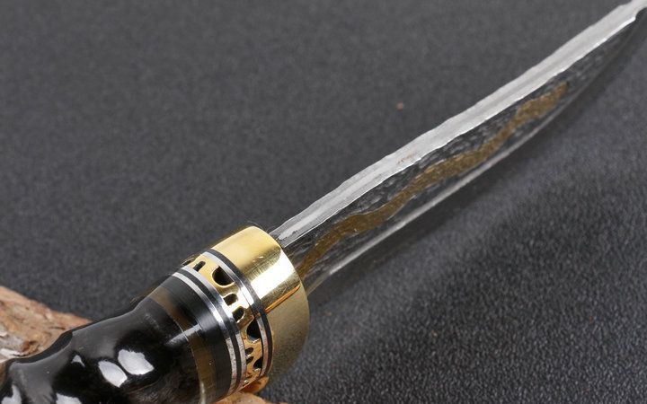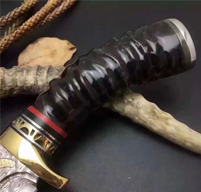 刃材:锻打大马士革钢,内镶全黄铜小龙子。